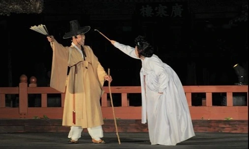 마치 코미디같이 이몽룡과 월매의 말이 빤히 들리는데, 못 들은 것처럼 향단이에 의해 재현되는 세 사람의 대화가 오가고, 마침내 그 거지꼴인 사내가 오매불망 그리던 이몽룡이란 사실에 버선발로 우르르 달려 나간 월매의 소리!
