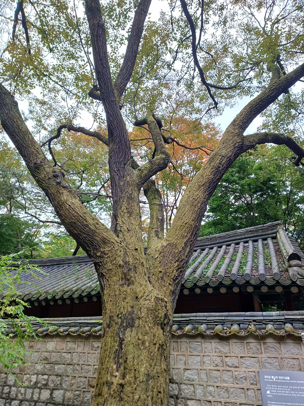 뽕나무 수령이 무려 400여 년이란다. 이 뽕나무는 높이 12m에 가슴 높이 줄기 둘레는 239.5㎝로 창덕궁 내에 있는 뽕나무 중 가장 크다고 한다. 2006년 천연기념물로 지정된 뽕나무 정말 멋있다. 한참을 서서 보고 또 본다.