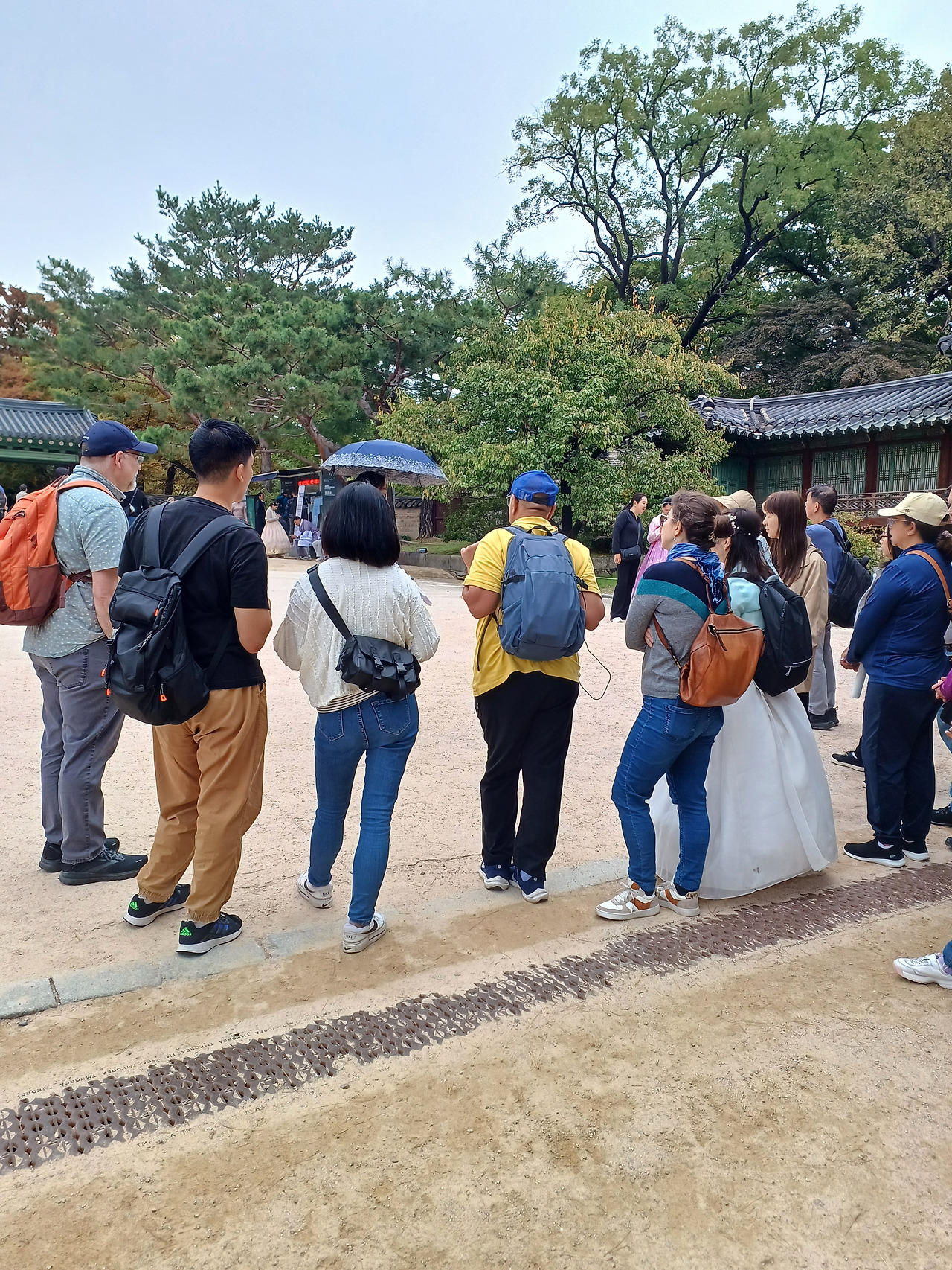 필자도 만 65세가 넘어 줄을 서야만 했다. 현장 매표 보조원들도 안내를 그렇게 한다. 여기서 한 가지 의문이 생긴다. 내국인을 나이와 한복 착용자로 구분하는 것은 창덕궁 관람료 때문인 듯하다. 매표소에서 표를 사야 하는 사람은 창덕궁 무료 관람자와 외국인이다.