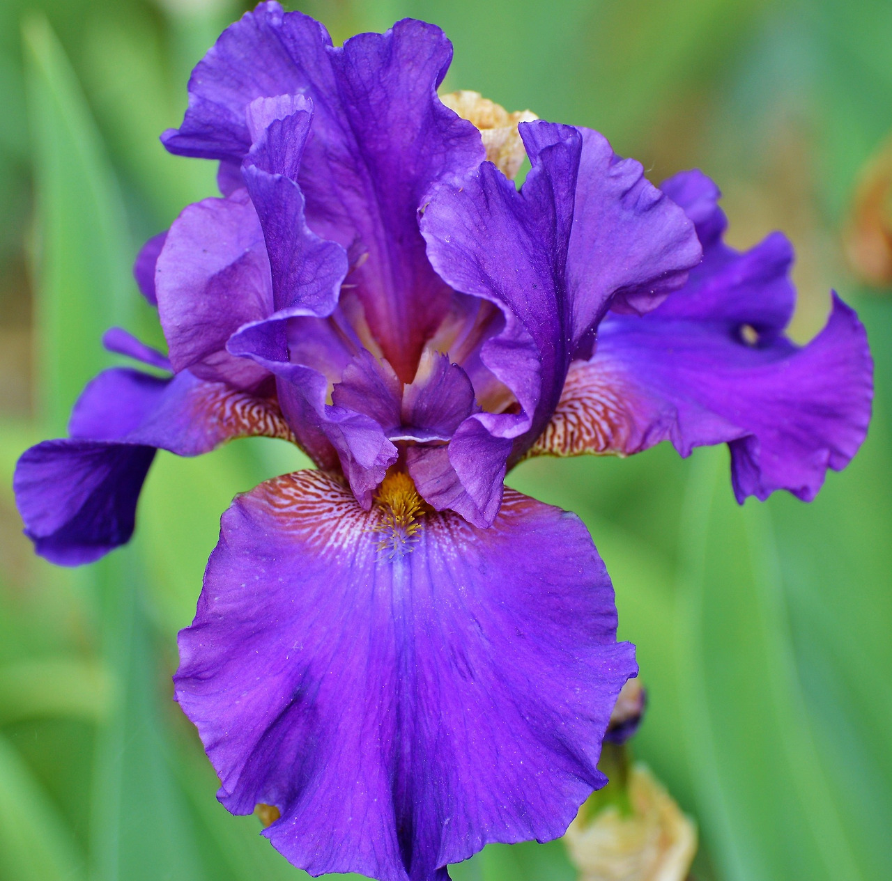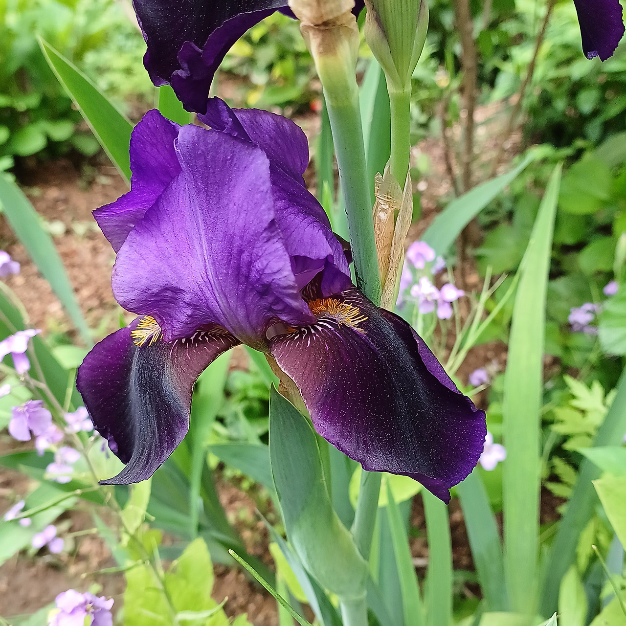눈부시게 피어난 보랏빛 붓꽃 한 송이.