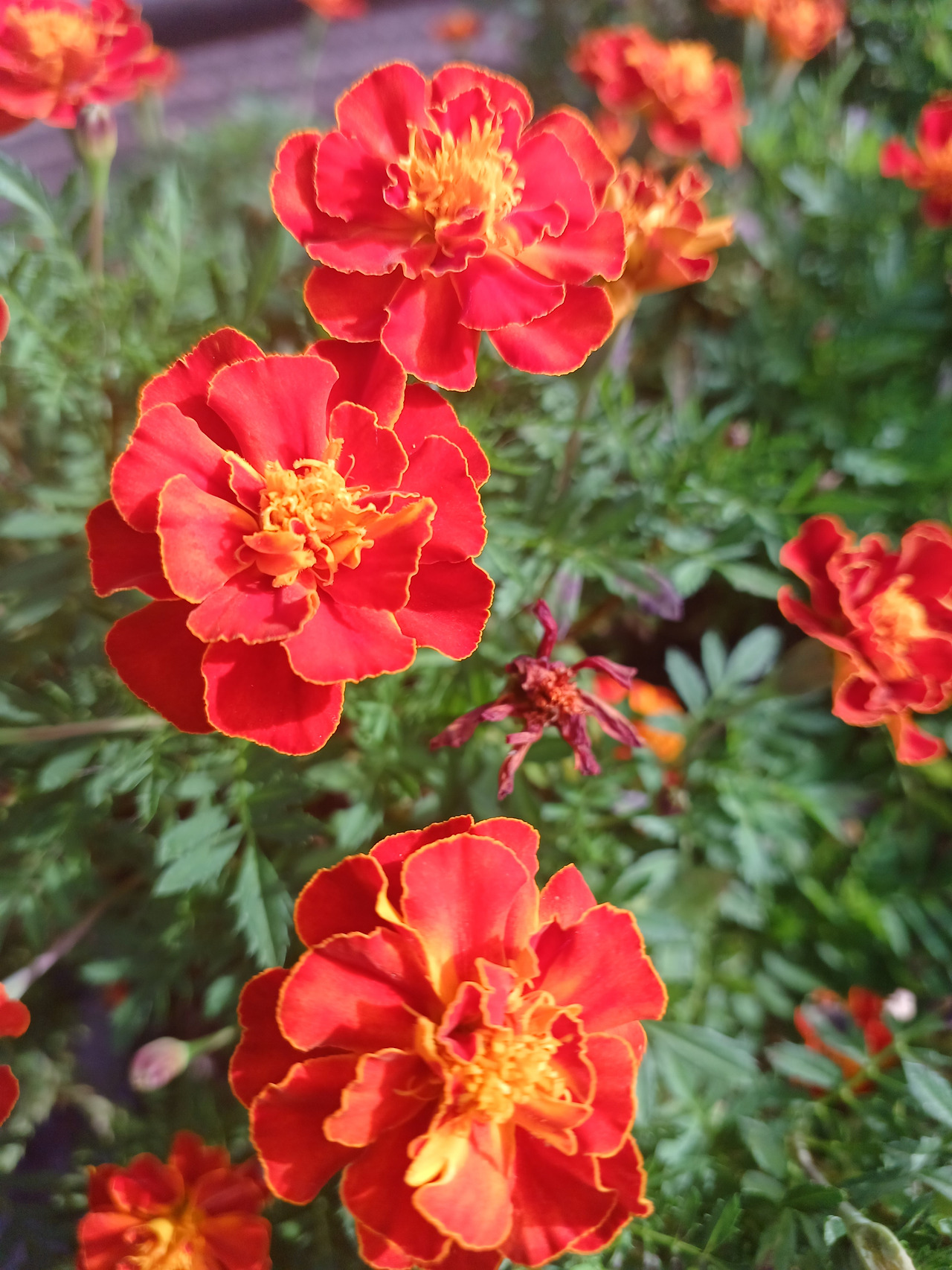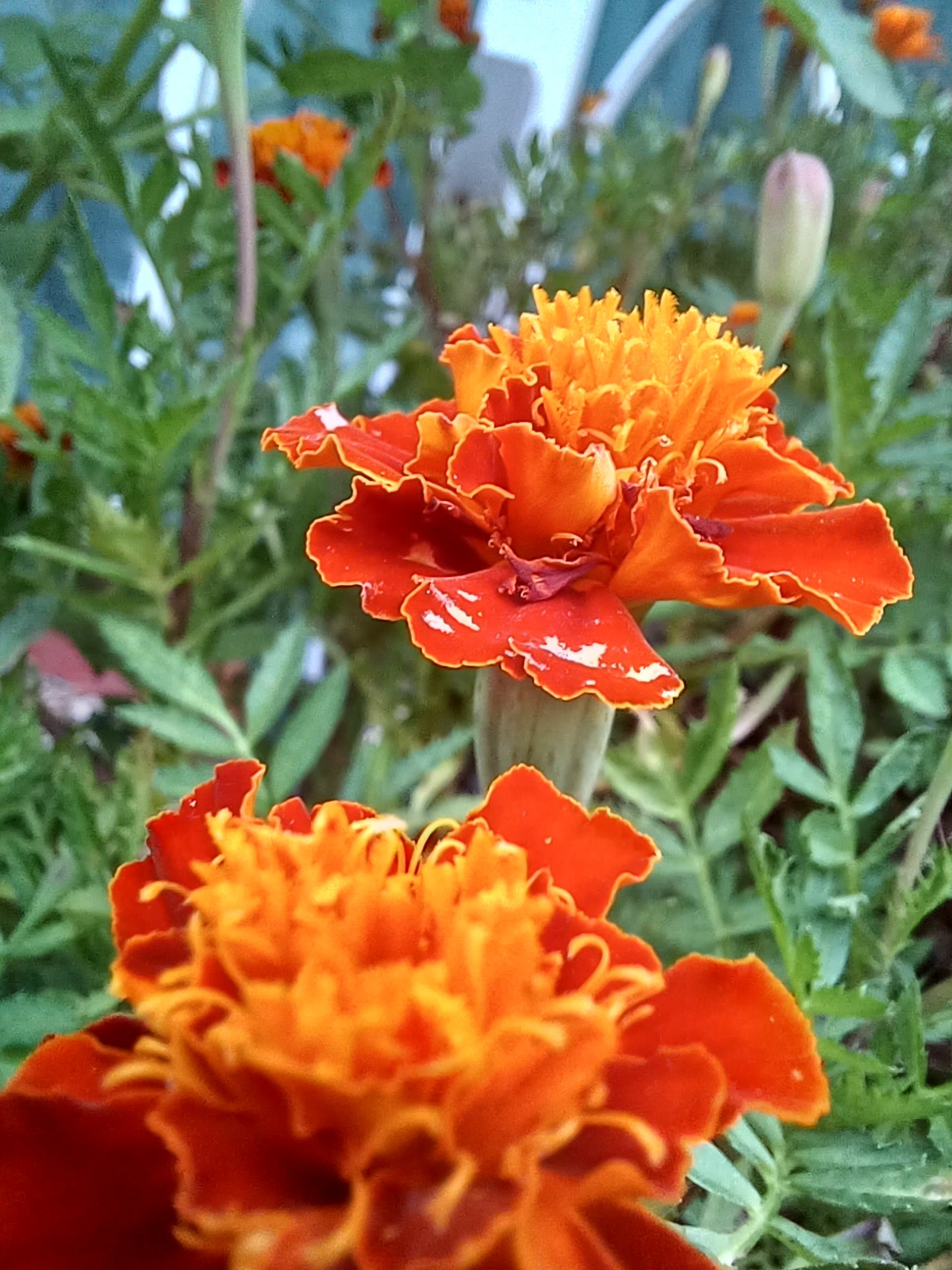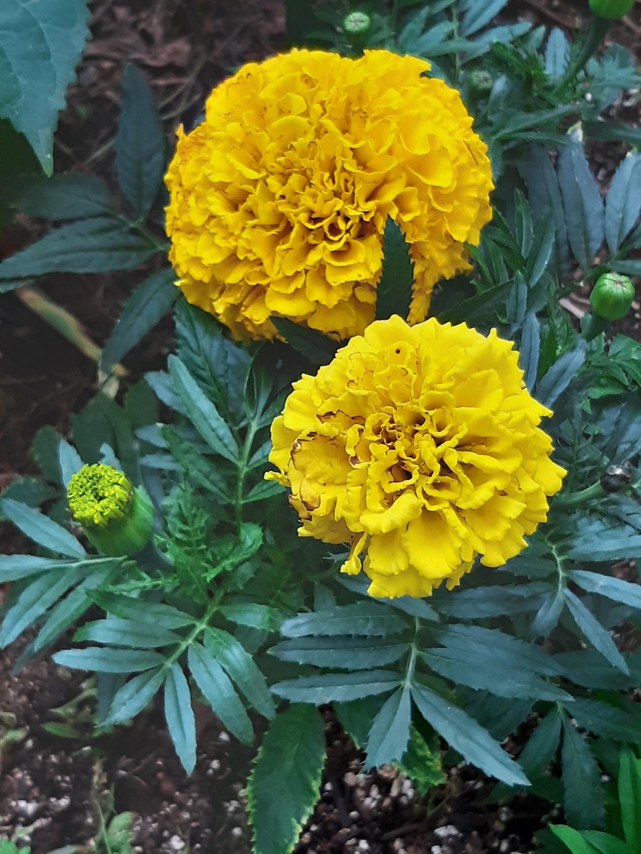 작은 정원의 한편, 노란 메리골드가 피어 있었습니다.