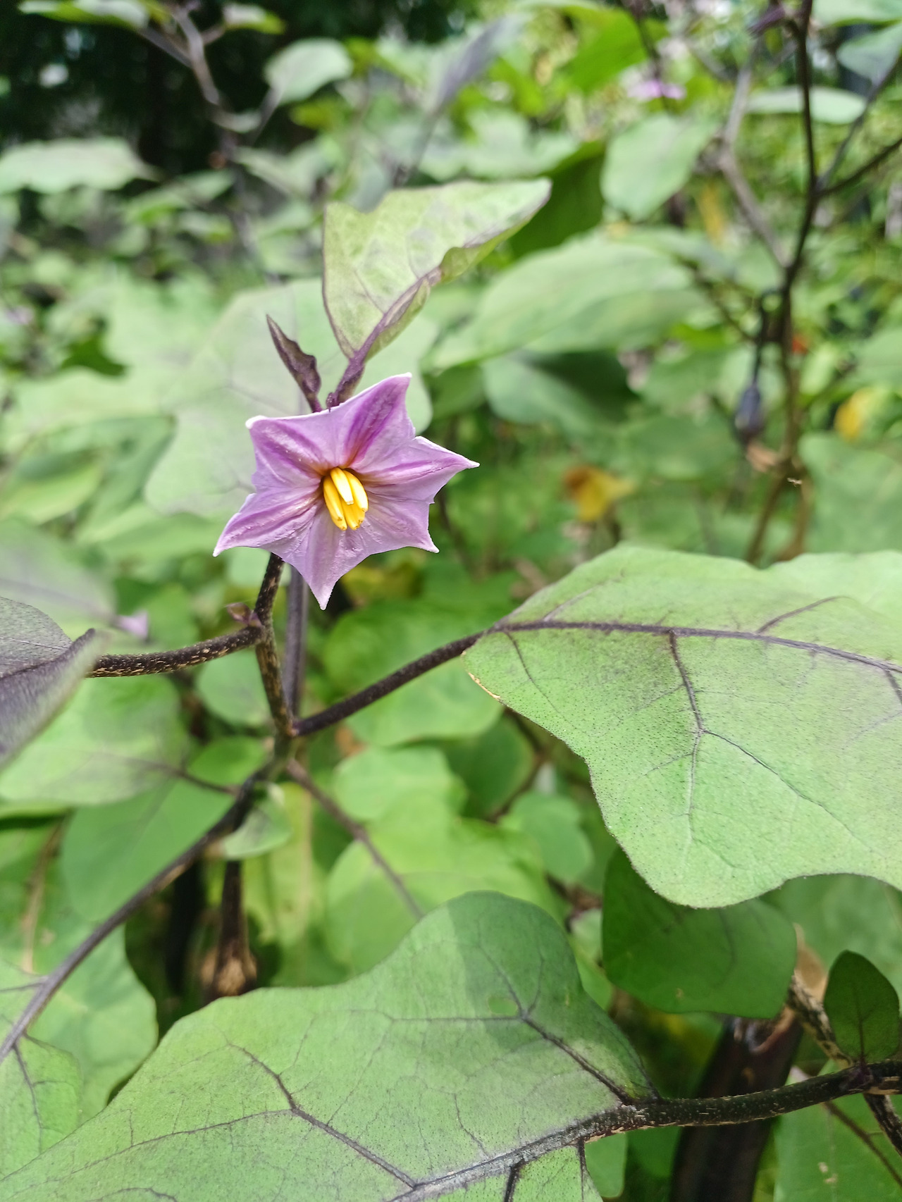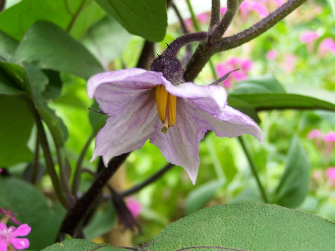 가지꽃은 다섯 갈래로 갈라진 보라색 꽃잎을 지니며,
