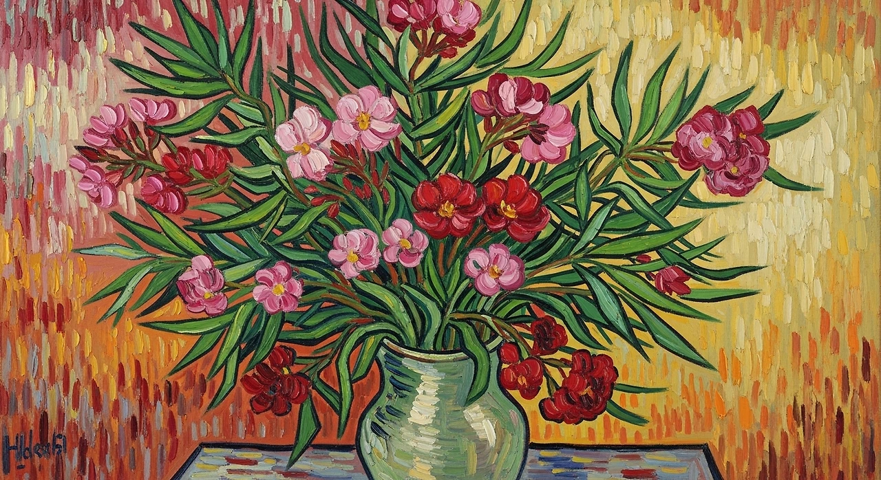 〈Oleanders〉라는 그림 속에서 나는 끊임없이 새싹을 내뿜는 생명력의 상징이 되었습니다.