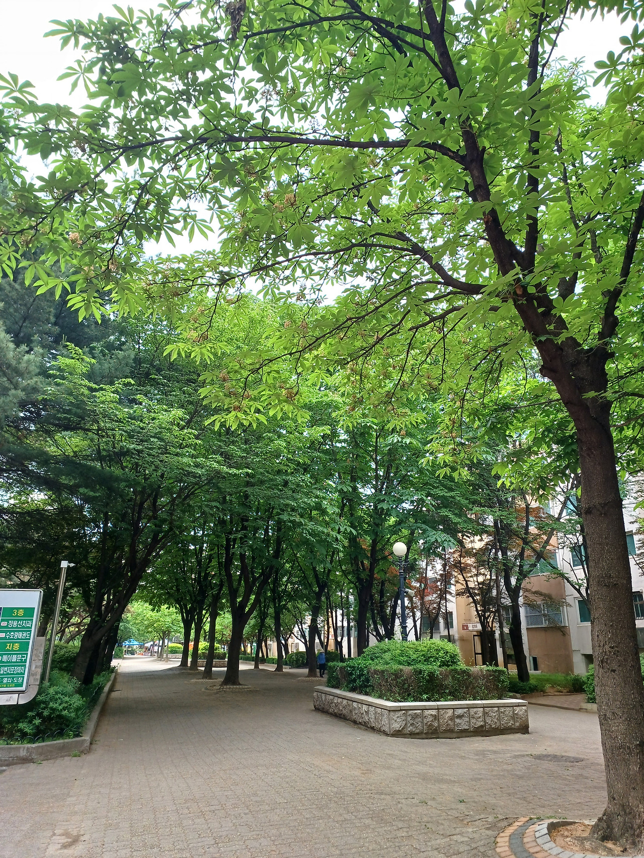 목 목동아파트 산책길에 만난 마로니에와 두 소녀산책길에 만난 마로니에와 두 소녀