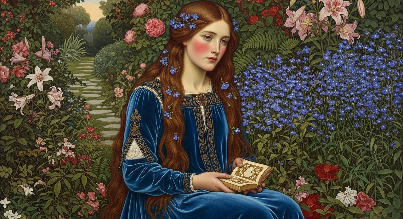 또한 프리라파엘파 화가 윌리엄 헌트(William Holman Hunt)는 정원 풍경 속 제 푸른빛을 인물의 고요한 슬픔을 부드럽게 강조하는 장치로 그렸습니다. 그의 붓끝에서 저는 고요한 열정을 품은 파란 불꽃이 되었답니다.