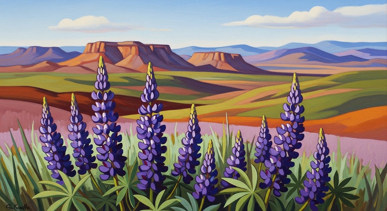 미국 화가 조지아 오키프(Georgia O’Keeffe)는 Lupine Near Taos에서, 사막의 고요와 나의 보랏빛 군락을 대담한 색채로 그렸지요.
