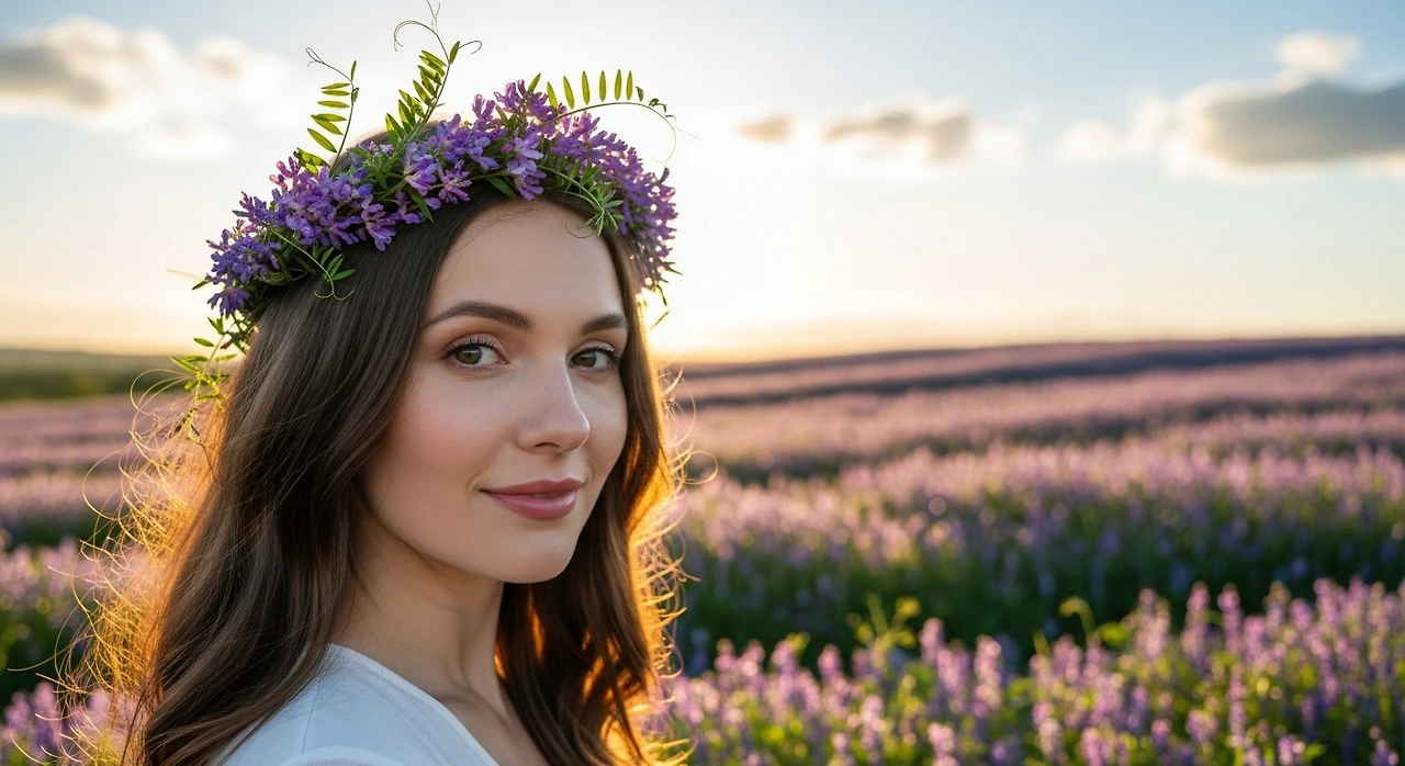 저는 작은 꽃들을 모아 둥근 화관을 만듭니다.