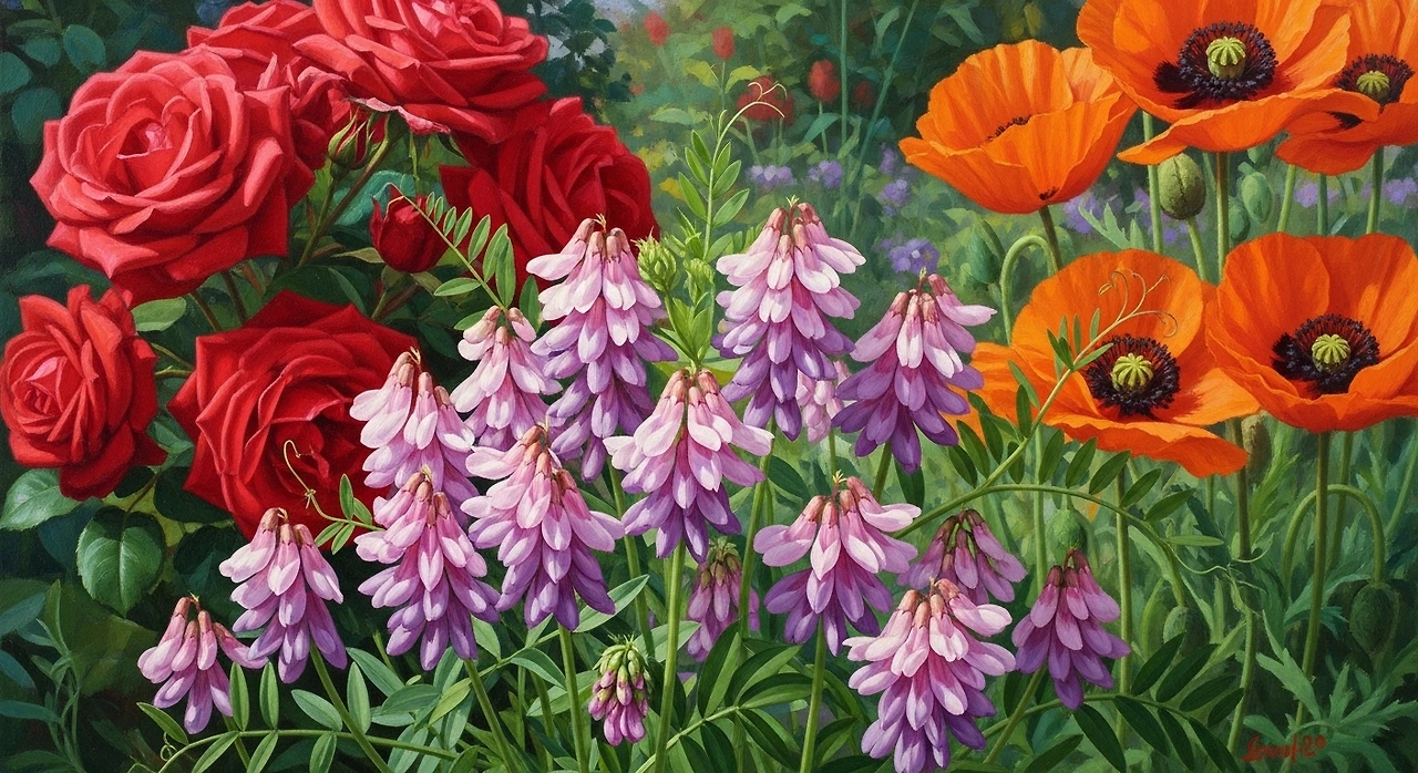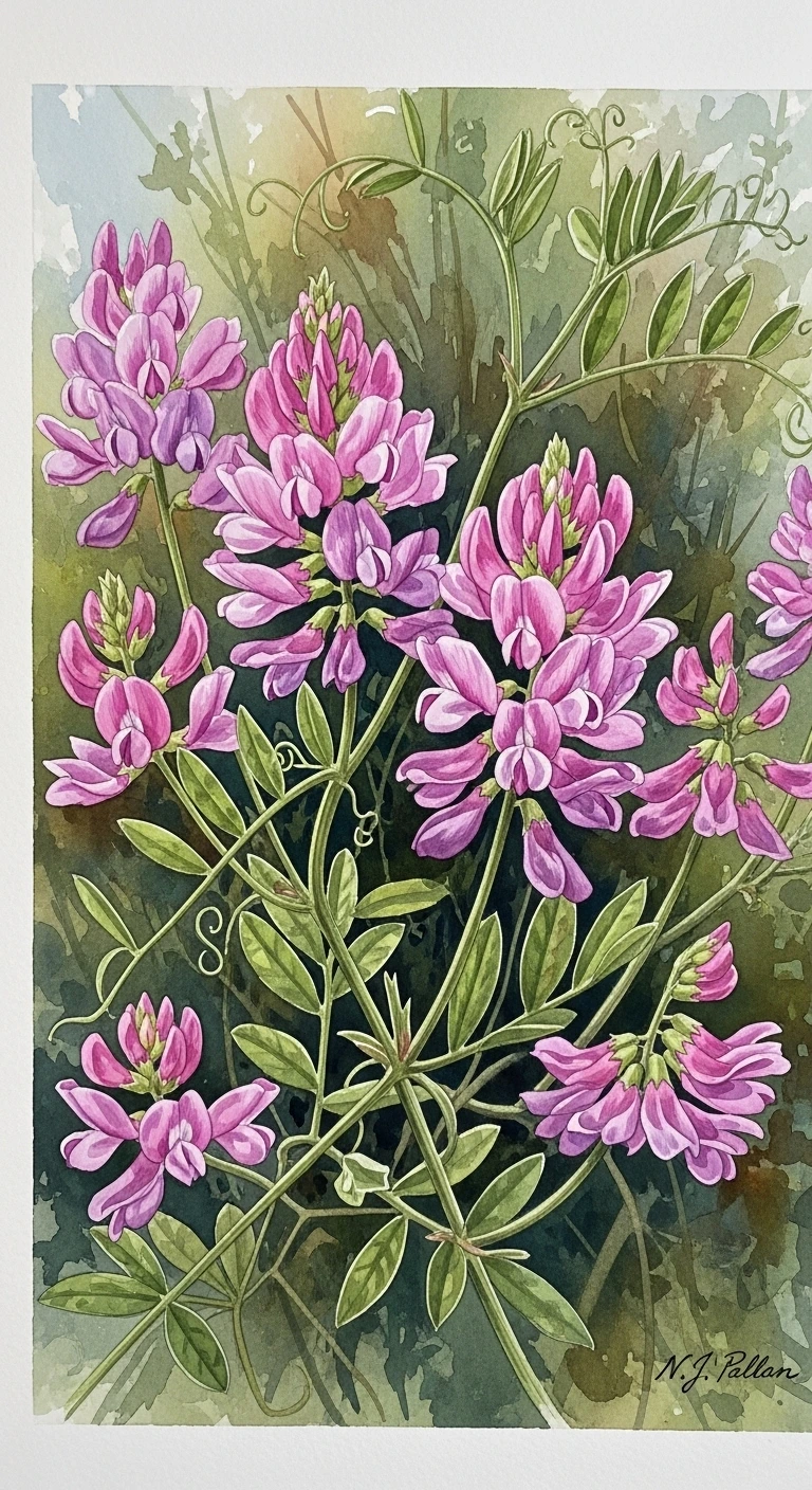 현대 작품: Nancy J. Pallan, Crowned Vetch (수채화) / Barbara Traficonte, Field of Purple Crown Vetch (파스텔화)
