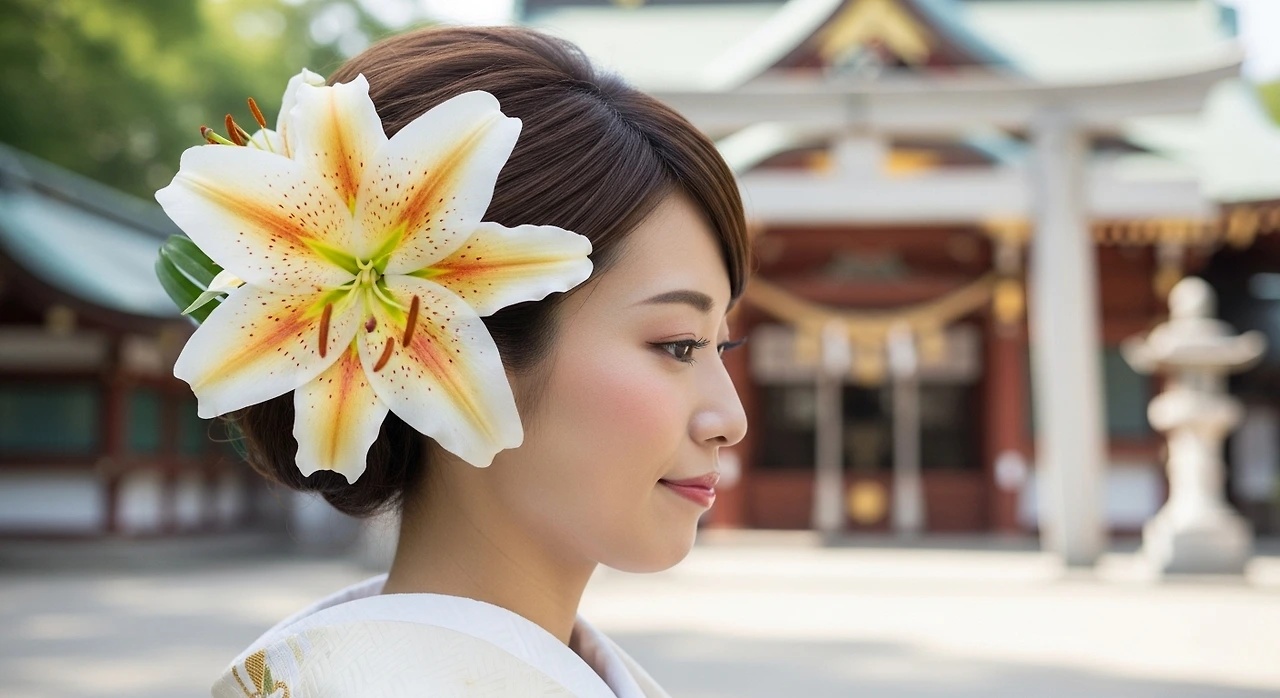 혼례식 날, 신부의 머리 장식으로 제 꽃잎을 얹으면