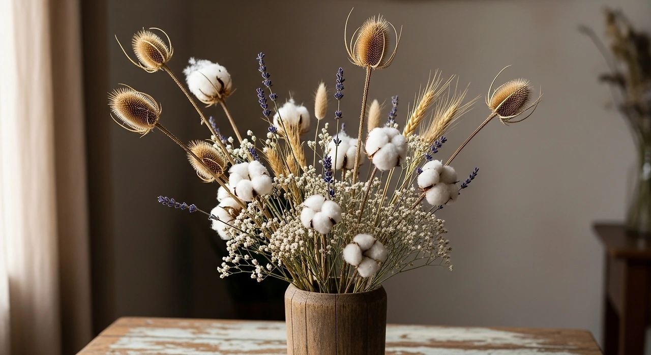 자연주의 부케나 겨울 리스, 드라이플라워 장식에 자주 사용합니다.