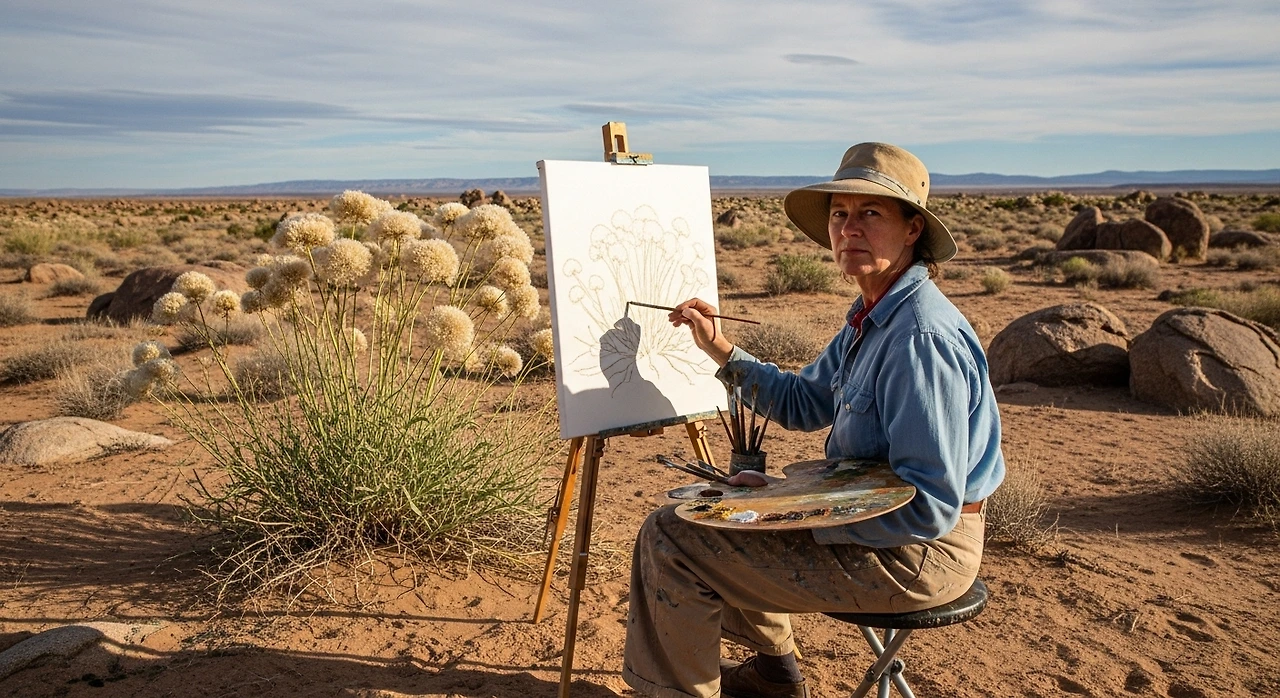 그녀는 모래와 돌, 바람뿐인 뉴멕시코 사막에서