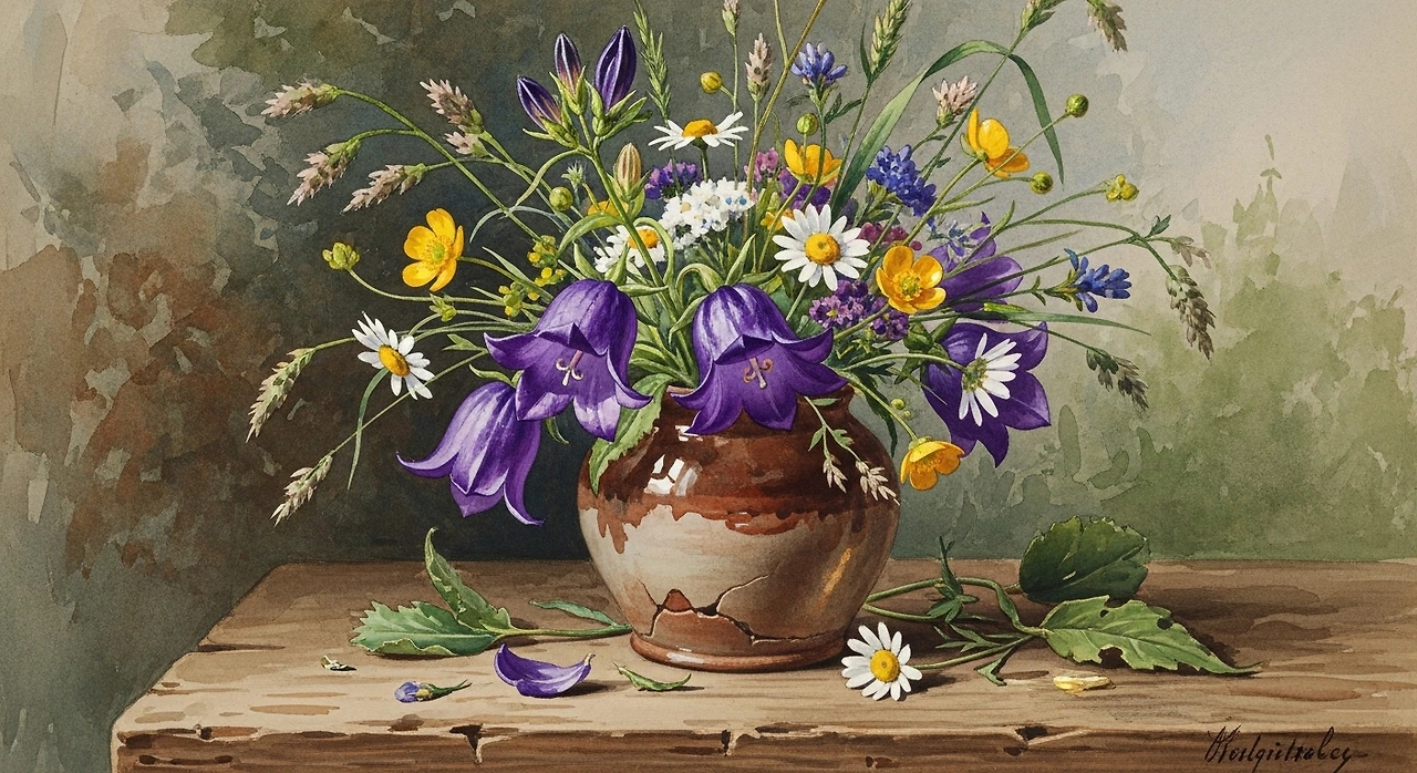 자신의 수채화 ‘들꽃 정물화’에서 초롱꽃을 중심에 두었습니다.