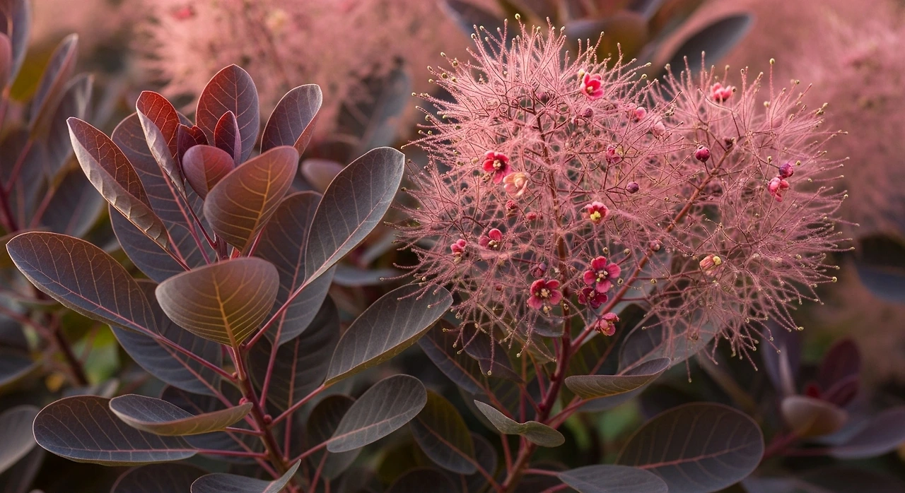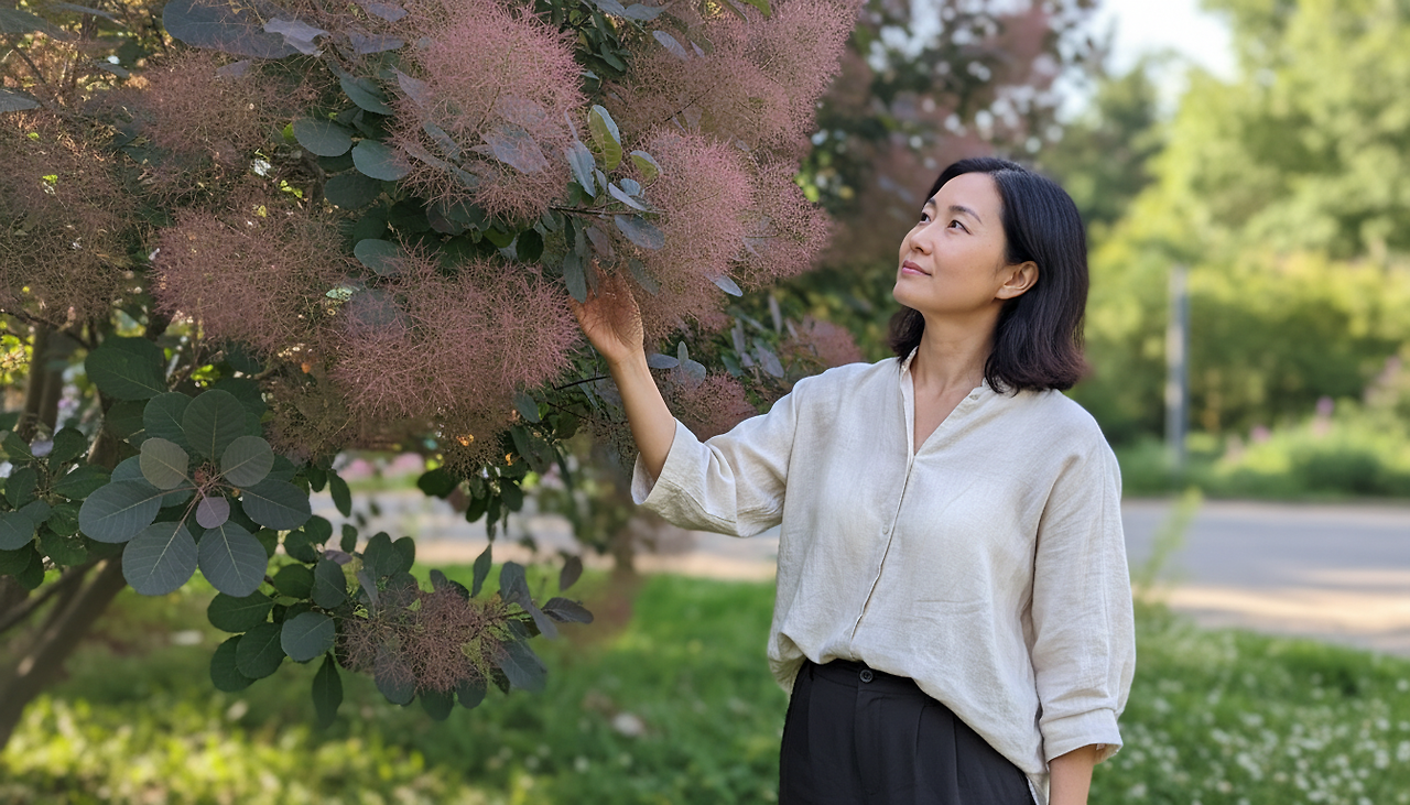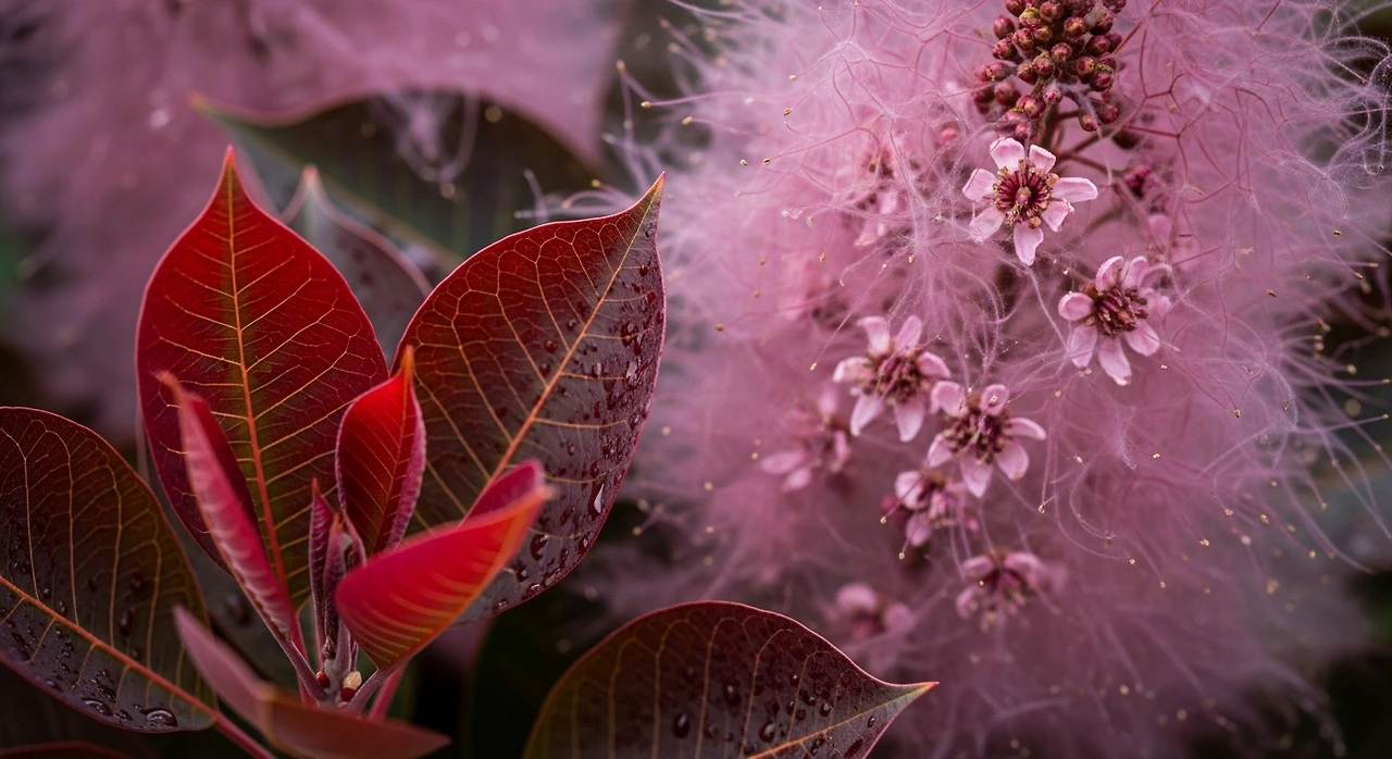 그중에서도 ‘자엽안개나무(Royal Purple Smoke Tree)’는 햇살 아래에서 가장 강렬하게 빛나는 품종이다. 잎은 짙은 자줏빛으로 물들고, 바람에 스칠 때마다 부드러운 연무가 피어오른다. 사람들은 그 모습을 보고 고요한 정열과 품위, 그리고 지혜를 떠올린다. 나는 겉으로는 차분하지만 속에서는 천천히 타오르는 불빛이 된다.