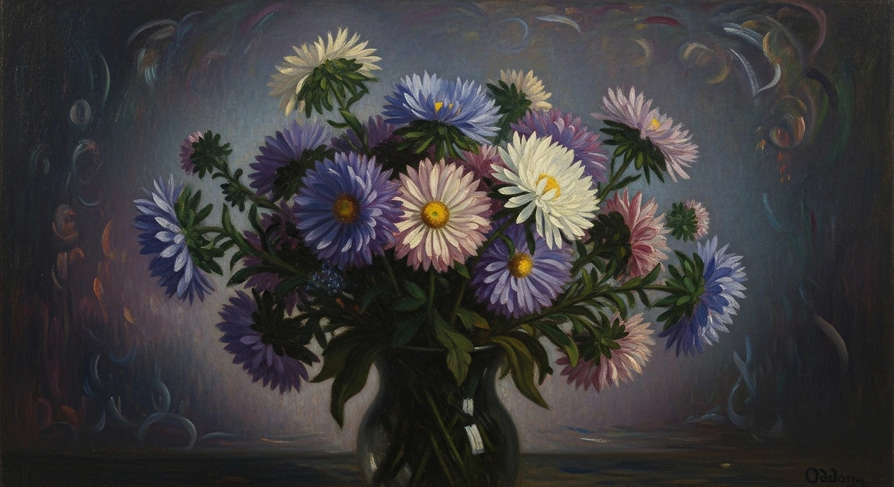 상징주의 화가 오딜롱 르동(Odilon Redon)의 Bouquet of Asters(1905)에서도 저는 등장하지요. 어두운 배경 속에서 부드럽게 피어난 저의 모습은 그에게 ‘사라지는 빛, 그러나 사라지지 않는 영혼’을 의미했습니다. 예술가들에게 저는 늘 덧없지만 잊히지 않는 존재, 즉 시간과 추억을 품은 꽃으로 그려졌습니다. 아마 그들은 제 안에서 자신들의 기억을 본 것이겠지요.