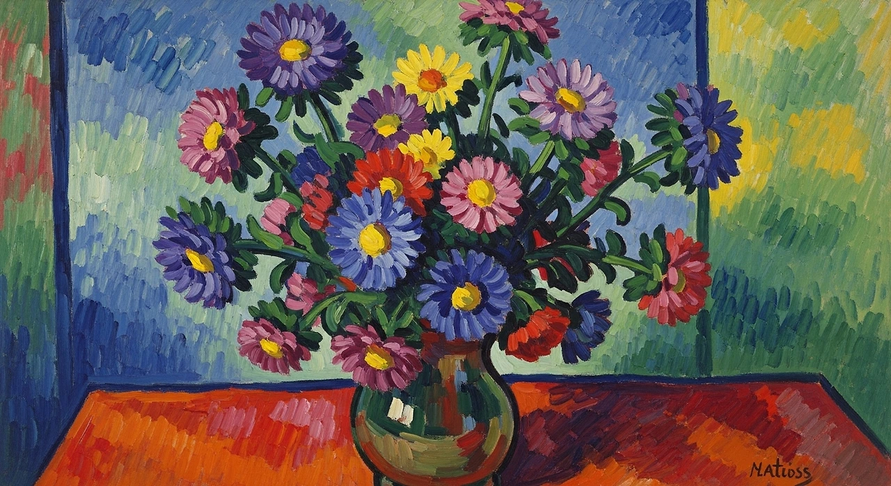 또 다른 화가 앙리 마티스(Henri Matisse)는 1912년 Asters에서 저를 단순한 형태와 강렬한 색면으로 그려냈습니다. 그의 붓끝에서 저는 ‘현실의 꽃’이 아니라 기억 속에서 다시 피어난 추억의 색채가 되었습니다.