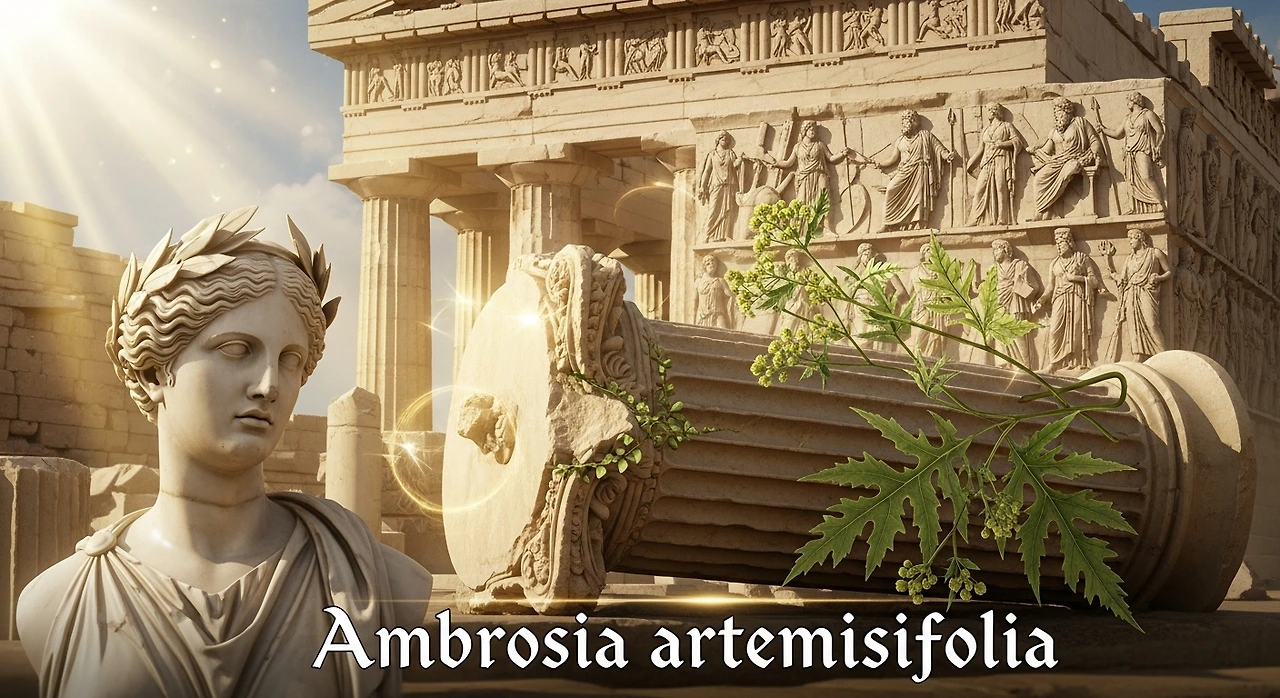 저의 이름 앰브로시아는 그리스 신화에서 비롯되었습니다. ‘신들의 음식’, ‘불멸의 향기’라는 뜻을 가진 이름이지요. 신들은 저를 통해 영생을 얻고, 상처를 치유하며, 언제나 젊음을 유지했다고 합니다. 그런데, 아이러니하게도 저는 지금 ‘알레르기를 일으키는 잡초’로 불립니다. 신들의 불멸을 상징하던 이름이 세상 속에서는 ‘유해식물’이 되어버린 셈이지요.