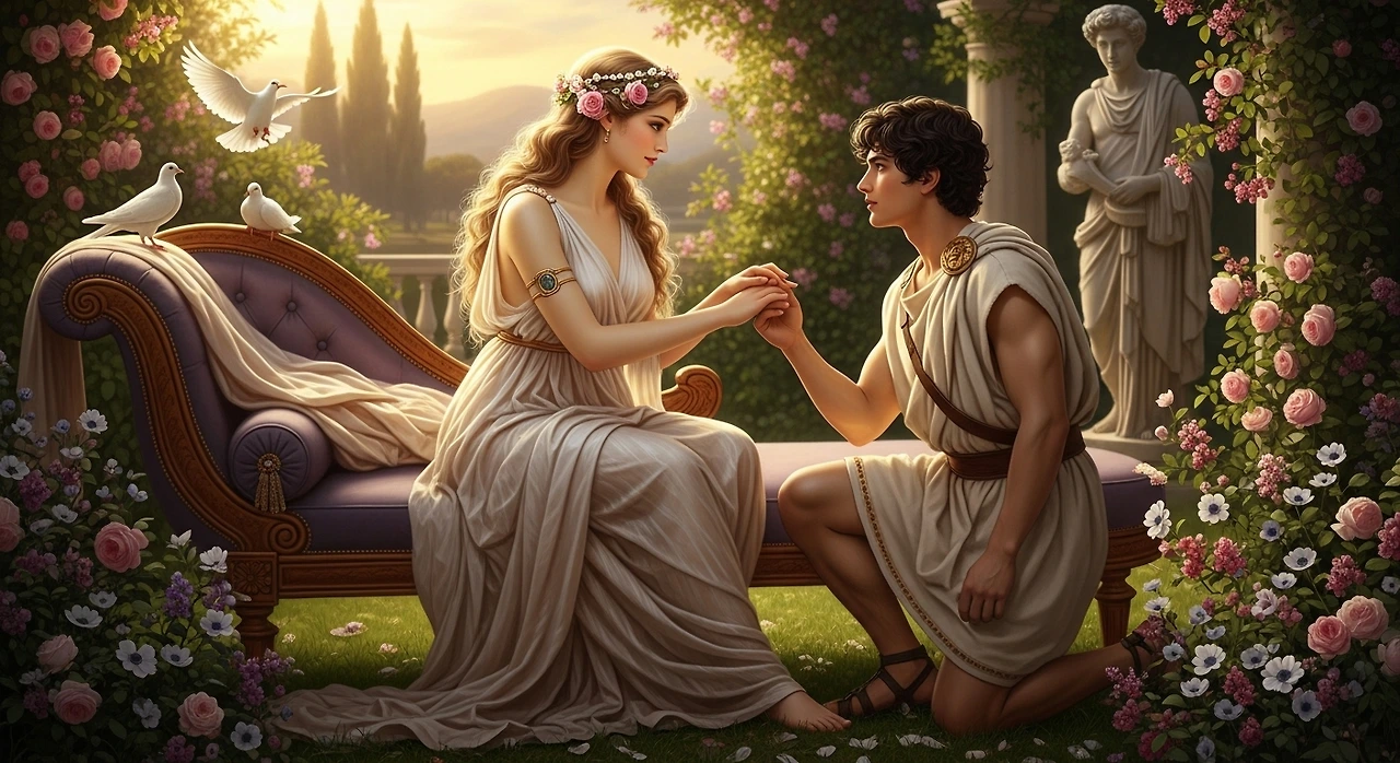 아도니스는 세상에서 가장 아름다운 소년으로 자라났습니다. 저는 그의 첫 울음을 곁에서 들었고, 그의 눈부신 미소를 지켜보았습니다. 사랑의 여신 아프로디테는 아도니스를 깊이 사랑했습니다. 그러나 그를 잠시 맡겨두었던 저승의 여왕 페르세포네도 그를 사랑하게 되었습니다.