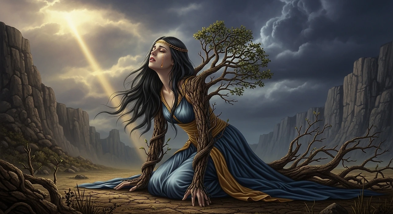 그녀는 고통 속에 신들에게 구원을 빌었고, 결국 몰약나무로 변했습니다. 그녀가 흘린 눈물이 굳어 제가 되었지요. 그리고 그 몰약나무의 껍질이 갈라지며 한 아이가 태어났습니다. 그가 바로 아도니스였습니다.