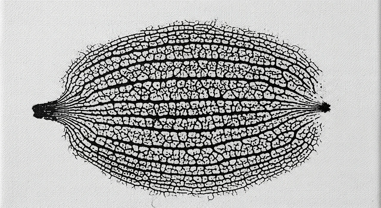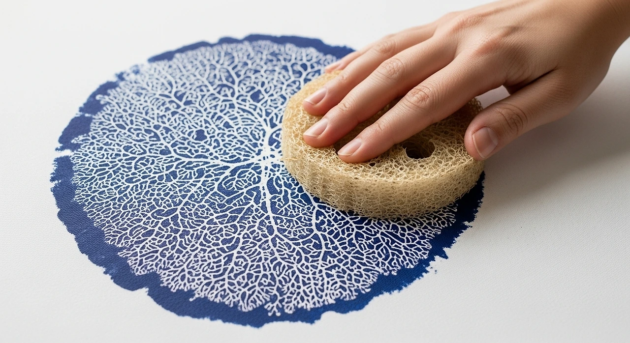 성숙한 수세미 열매는 섬유질을 남기며 말라가는데, 이 결은 설겆이용 수세미로만 활용되지 않았습니다. 먹이나 안료를 머금게 한 뒤 캔버스에 눌러 찍으면 붓으로는 나오지 않는 미세한 질감이 화면에 남습니다. 그것은 마치 식물의 속살이 남긴 지문 같았습니다.