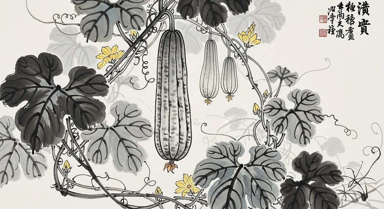 수세미는 회화 속에서도 존재감을 남긴 식물이었습니다. 문인화에서는 박·오이·여주 등과 함께 덩굴을 그리며 계절을 표현하는 경우가 많았는데, 그중에서도 수세미는 ‘한 줄기 선’의 휘어짐을 가장 우아하게 드러낼 수 있는 소재였습니다.