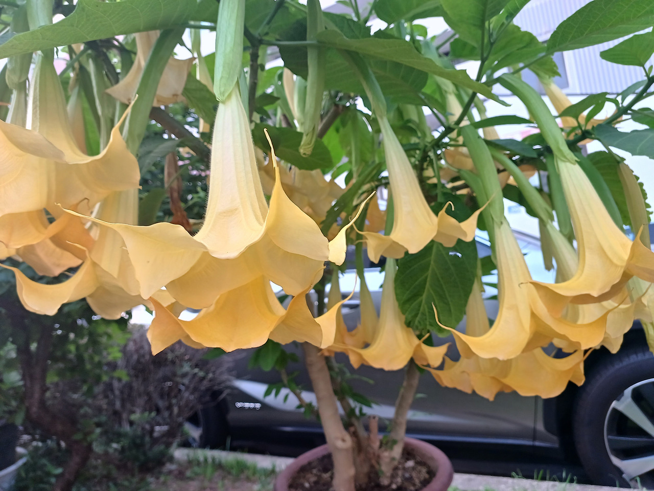 오늘 소개할 주인공도 바로 그 교회 화분에서 만났습니다. 그 이름만 들어도 설레게 하는 꽃, ‘천사의 나팔(Angel's Trumpet)’입니다.