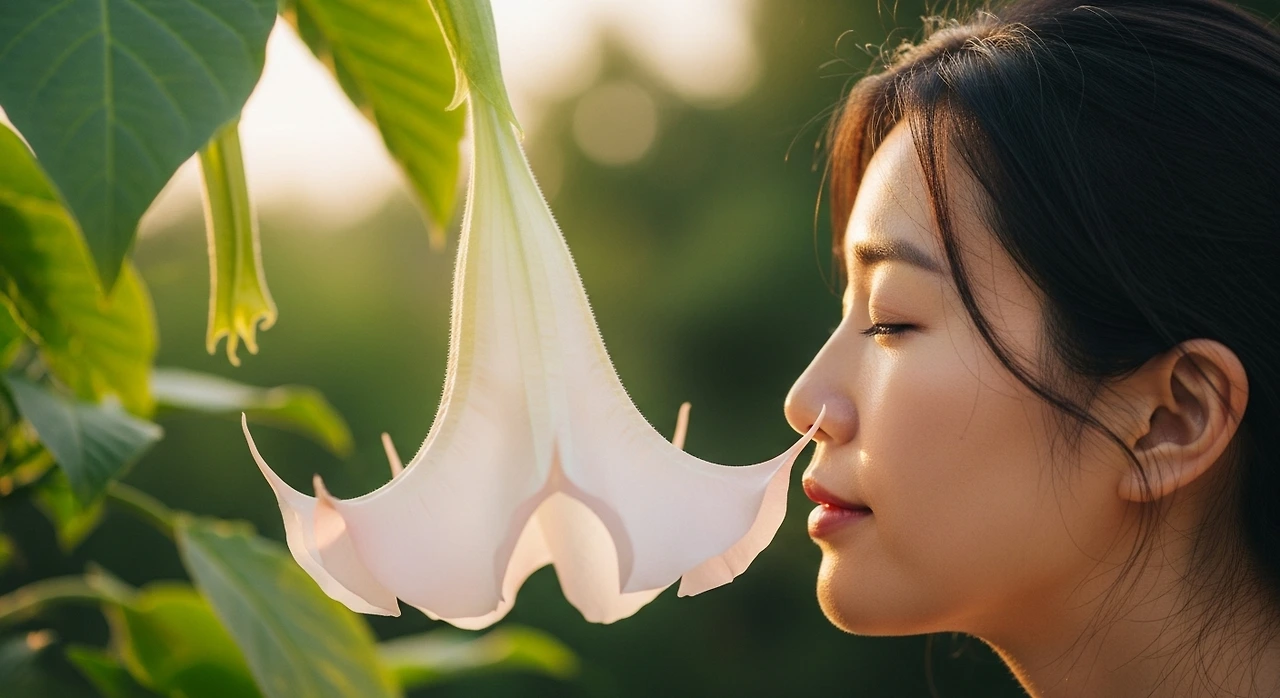 하지만 이 식물의 모든 부분(Brugmansia는 가지과에 속함)에는 스코폴라민, 아트로핀 등 치명적인 독성 물질이 포함되어 있어 섭취 시 환각 작용은 물론, 생명을 위협할 수 있습니다. 아름다움 뒤에 숨겨진 강력한 독성 때문에 '악마의 나팔'이라 불리며 주의가 필요합니다.
