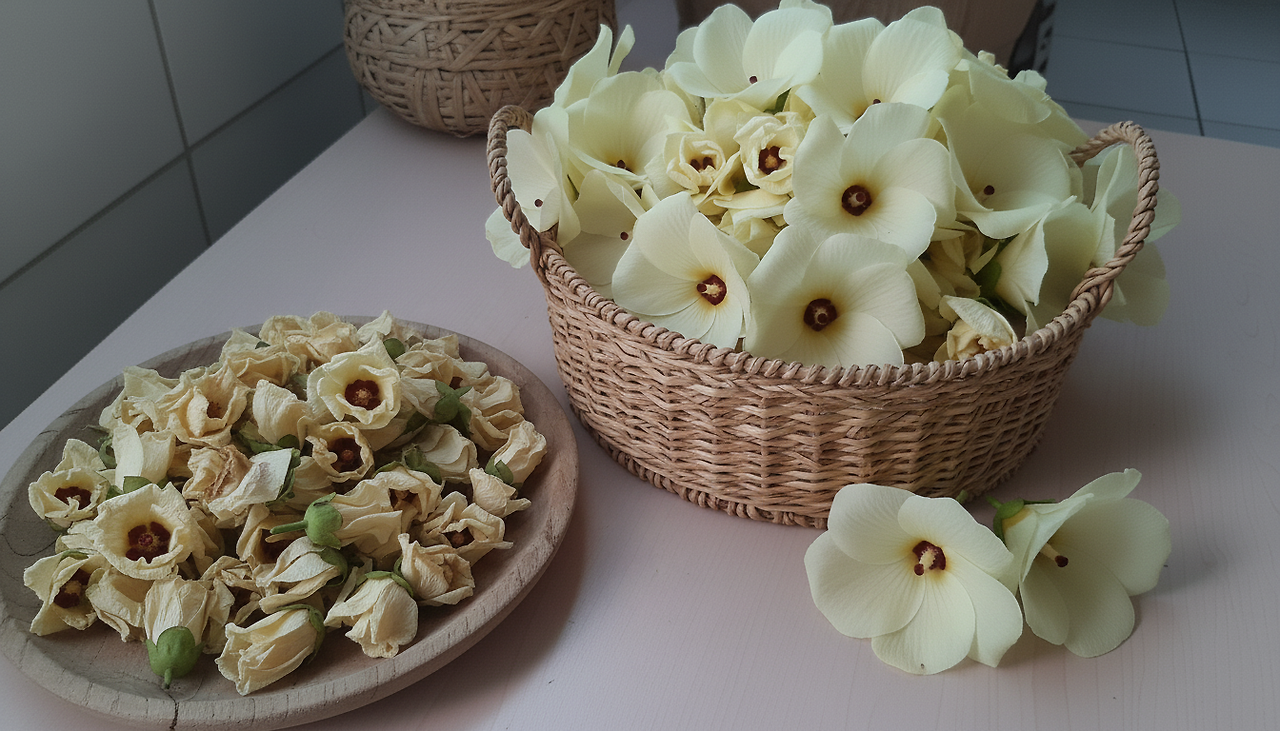 나에게는 아쉬운 추억이지만, 금화규는 잎, 꽃, 뿌리까지 버릴 것이 없는 보물입니다. 가장 대표적인 활용법은 꽃차입니다. 활짝 피기 전 오전에 채취한 꽃을 건조기에 급속 건조하거나 덖음 과정을 거쳐 차로 우려내면, 은은한 향과 함께 황금빛 우러나오는 영양수를 즐길 수 있습니다.