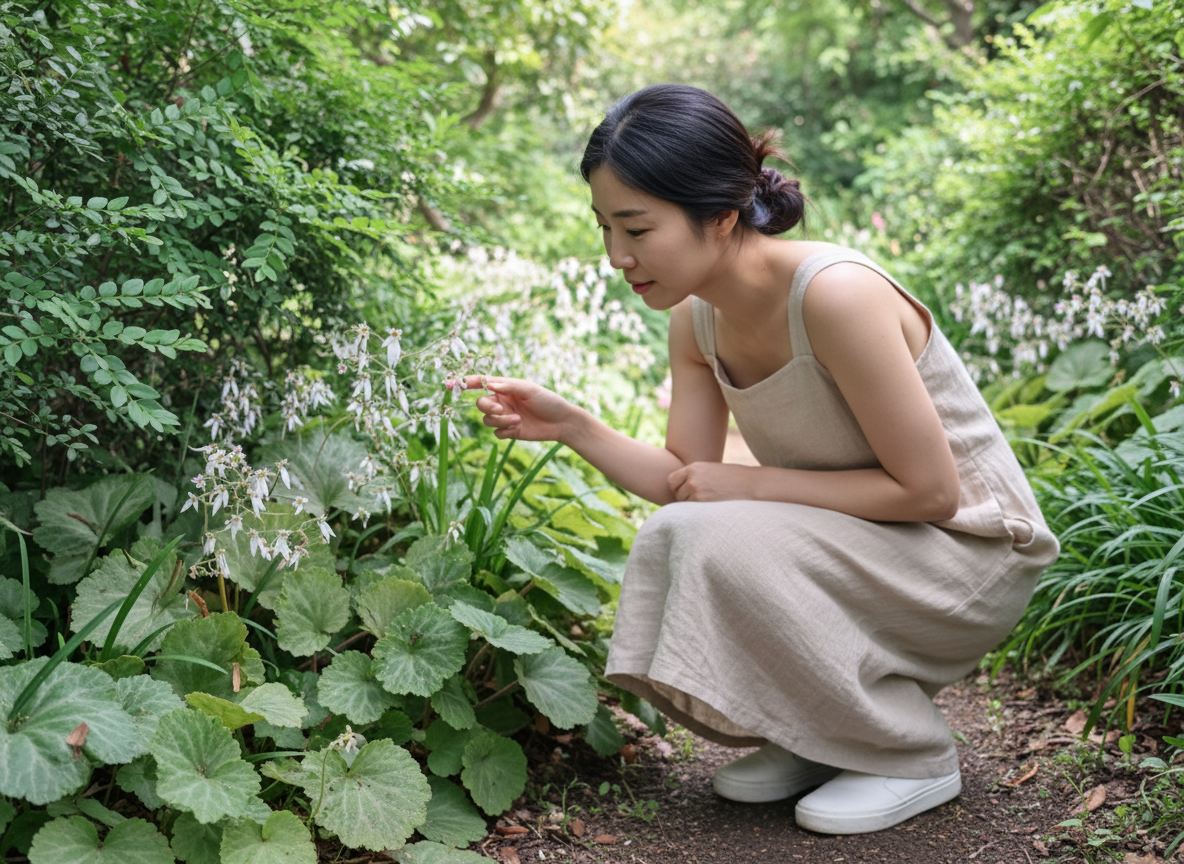 바위취는 거대한 대지보다 작은 틈을 더 믿습니다. 사랑 또한 완전한 확신이 아니라, 아주 미세한 가능성 하나로 이어지기도 합니다. 바위를 부순다는 이 식물의 어원처럼, 한 사람의 마음을 열어젖히는 일 역시 큰 사건이 아니라 물방울 같은 인내일지도 모릅니다. 떨어지고, 스며들고, 다시 스며들어 언젠가 작은 틈 하나가 꽃으로 바뀌는 과정.