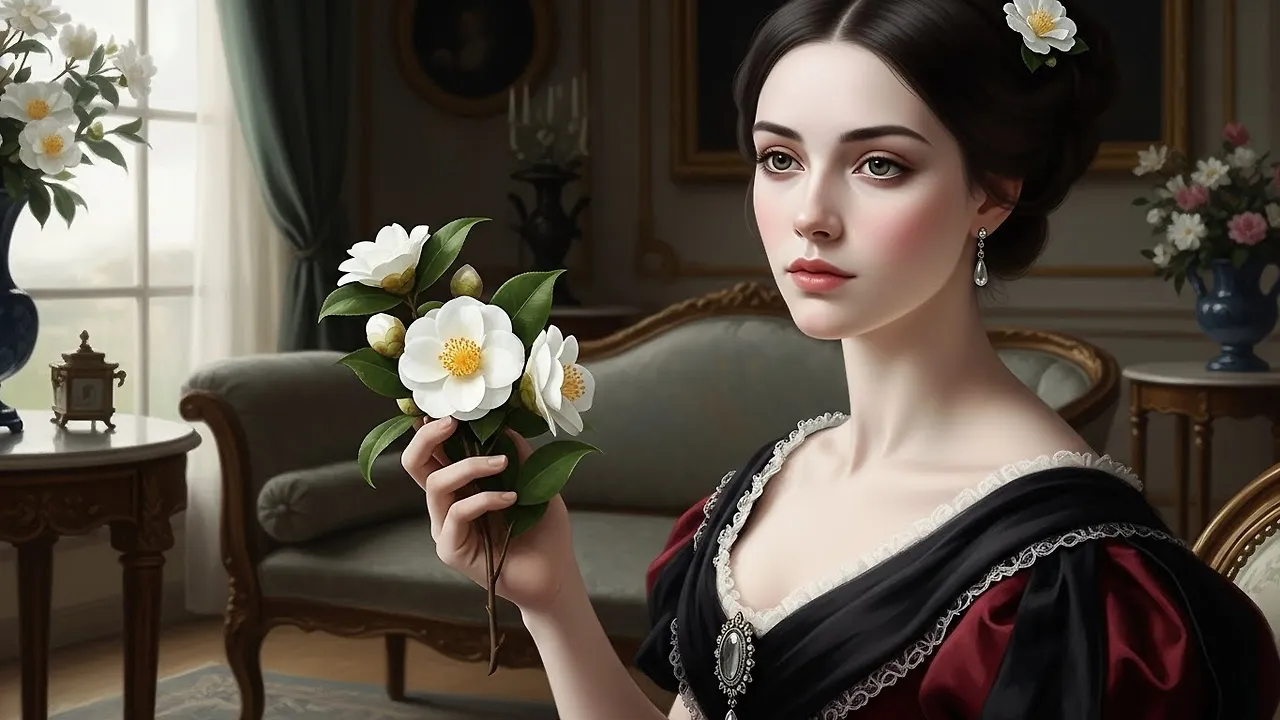 그녀의 동백은 하나의 문장이었고, 하나의 침묵이었으며, 어떤 날엔 ‘예’였고 어떤 날엔 ‘아니오’였습니다. 꽃이 말을 대신한 사랑의 시대 — 그 시대의 가장 뜨거운 언어가 바로 동백이었습니다.