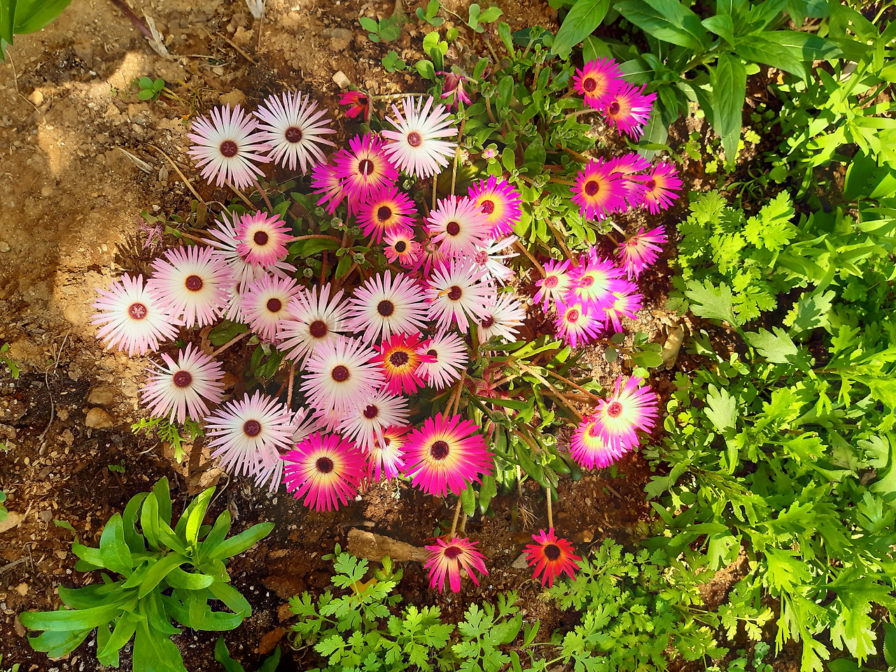 반면 리빙스턴 데이지는 일년생으로 재배되는 경우가 많으며, 꽃 색깔이 훨씬 다양하고 크며 화려합니다. 피그 마리골드가 잔잔한 미소라면, 리빙스턴 데이지는 반짝이는 눈부심에 가깝습니다. 같은 계열, 그러나 다른 성질—서로 닮았기에 더 선명해지는 개성이 있습니다.
