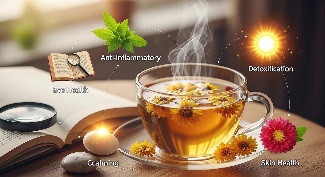 눈으로 즐기기 위한 관상용뿐 아니라 말려서 국화차를 만들고, 국화주로 빚거나 화전으로 부쳐 먹는 등 식용 문화도 깊게 뿌리내려 왔습니다. 국화차는 건조한 계절에 입술이 텄을 때 좋다는 옛말처럼, 겨울과 잘 어울리는 은은한 약성을 지니고 있습니다.