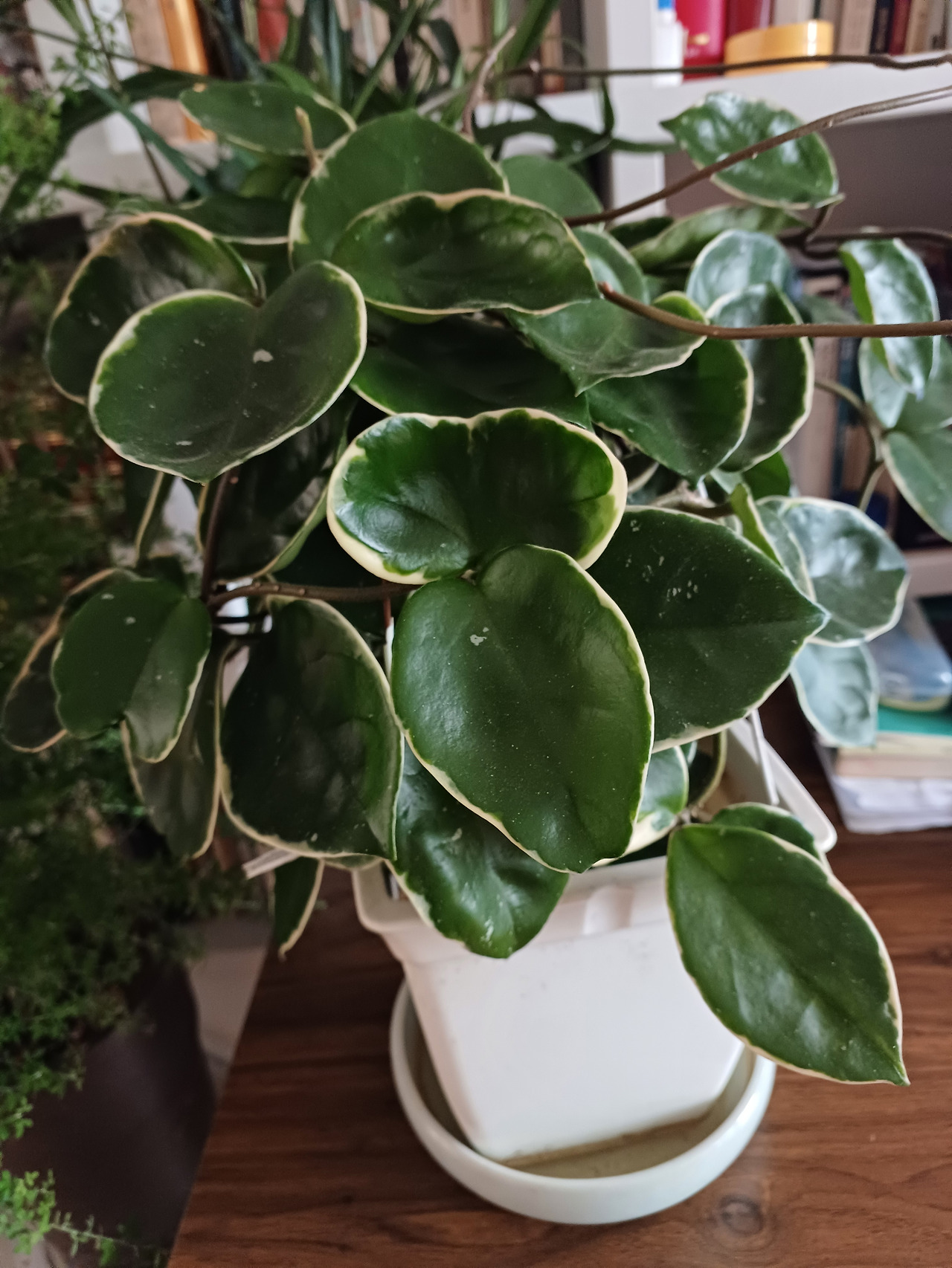 나의 호야는 도톰하고 둥근 잎에 왁스칠을 한 듯 윤기를 자랑하는데, 그 생김새는 오히려 잎 끝이 뾰족하고 반짝이는 벤자민고무나무의 잎과 훨씬 더 닮아 있습니다. 이 이름은 아마도 '귀한 식물'이라는 상징적인 의미를 담고 싶었던 옛사람들의 바람이 아니었을까, 혼자 추측해 봅니다.