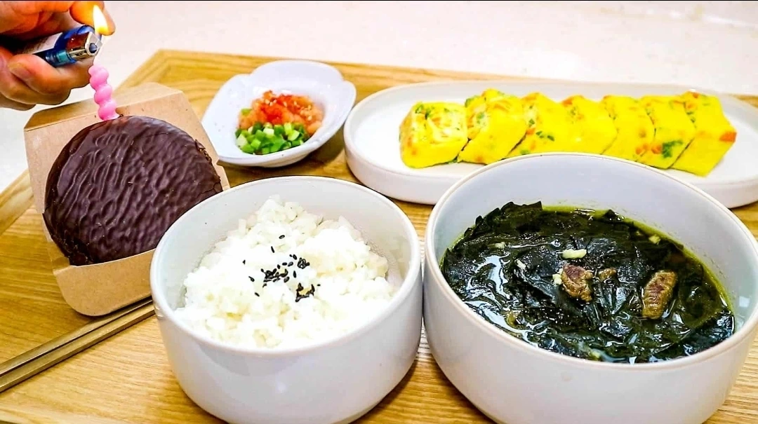 찰밥. 미역국. 계란말이 삼종 세트 먹었니?