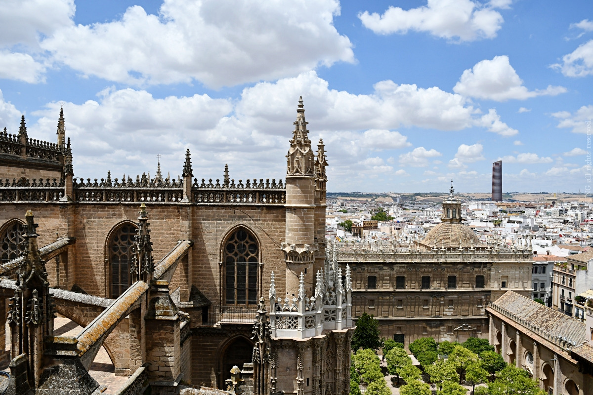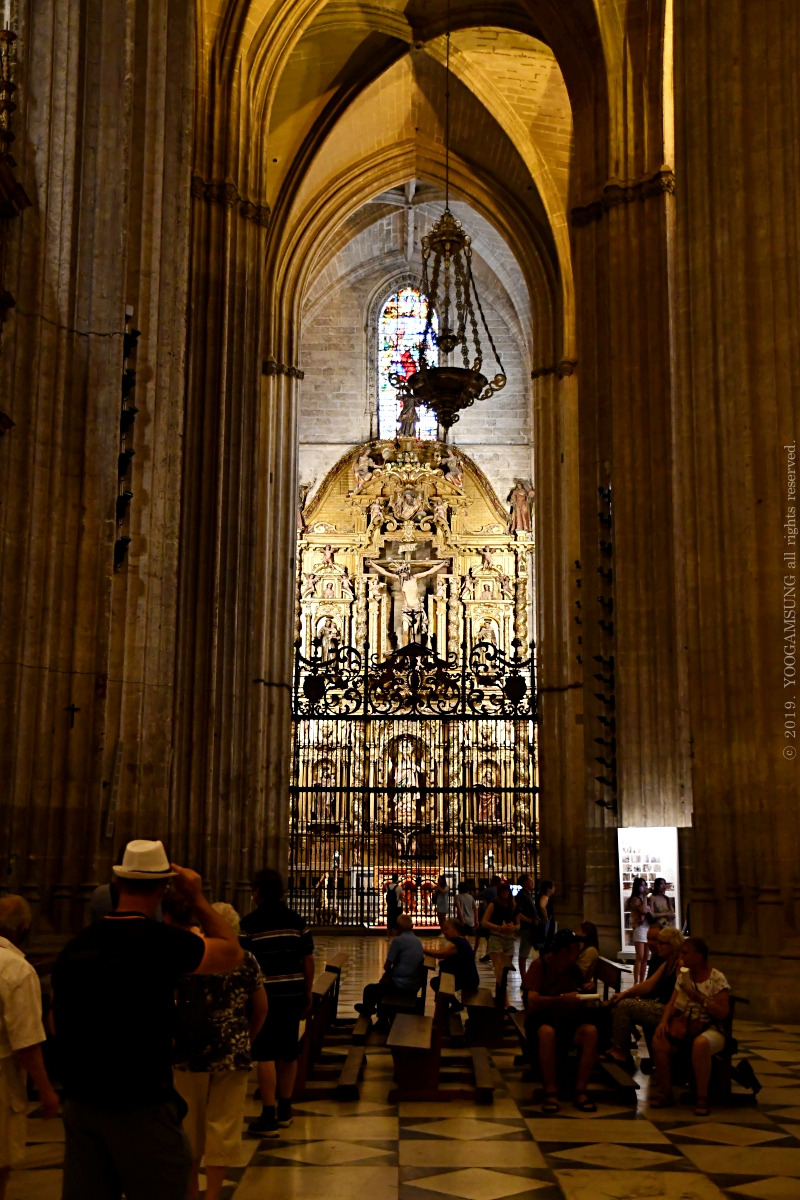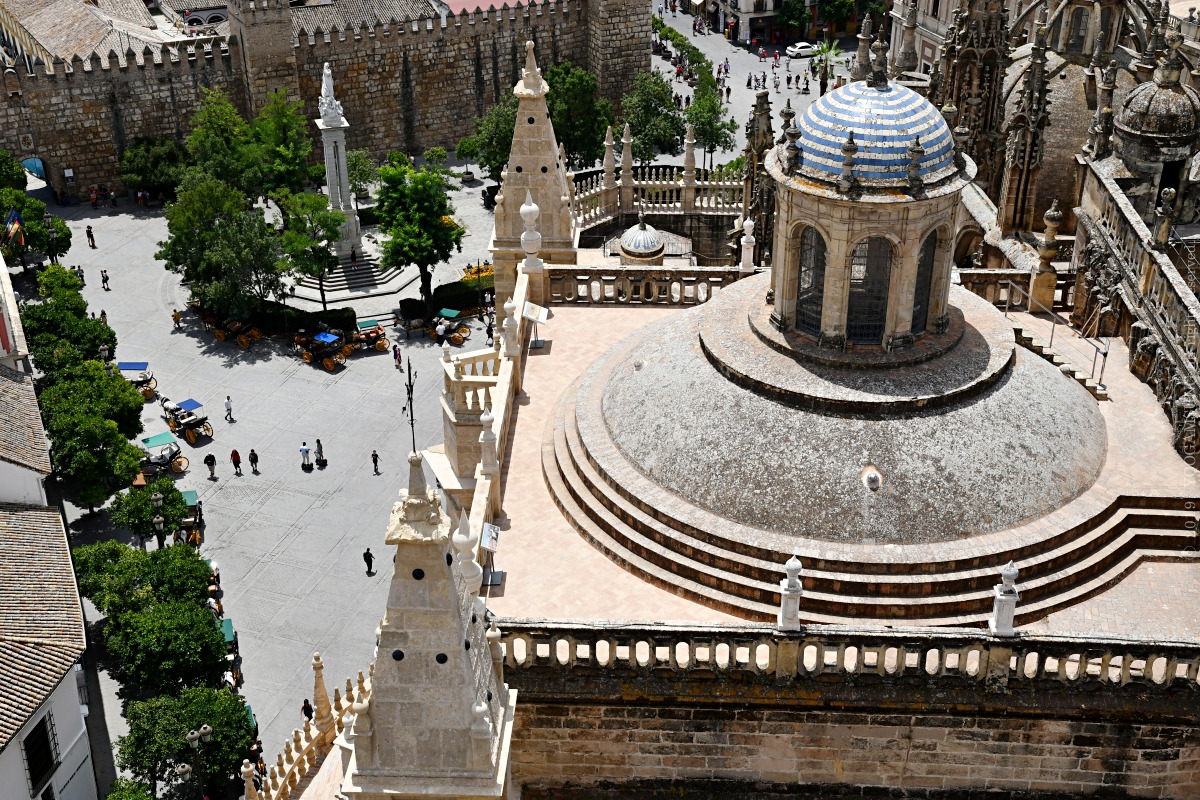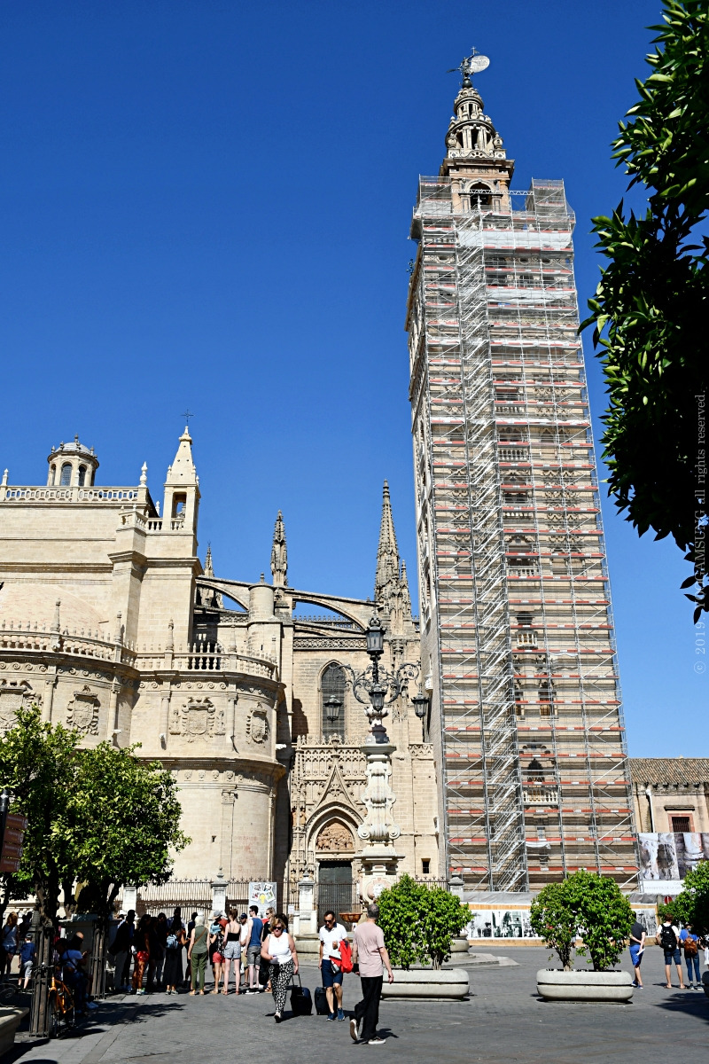 세비야 대성당에 가까이 가서 '히랄다 탑'을 보고 그 크기에 압도당하는 기분이었습니다. 세비야 대성당을 지을 때 "보는 사람들이 미쳤다고 생각할 정도로 큰 규모로 만들라"라고 지시했다고 해요. 실제로도 지금까지 세계에서 가장 큰 고딕 성당 건축물이라고 합니다.