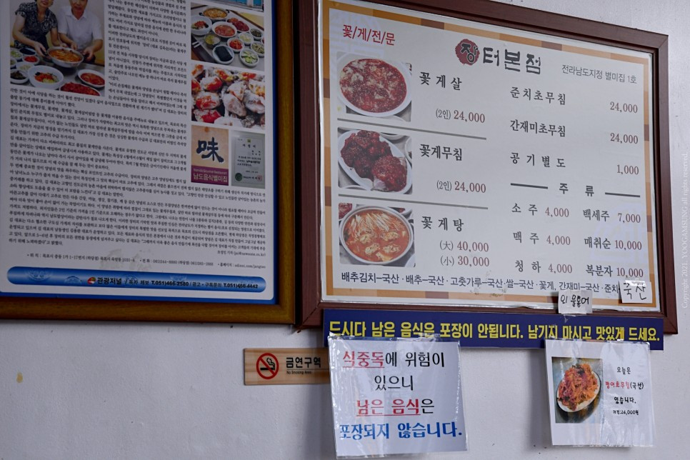 메뉴 : 꽃게살, 꽃게무침, 꽃게탕, 초무침, 주류 등
