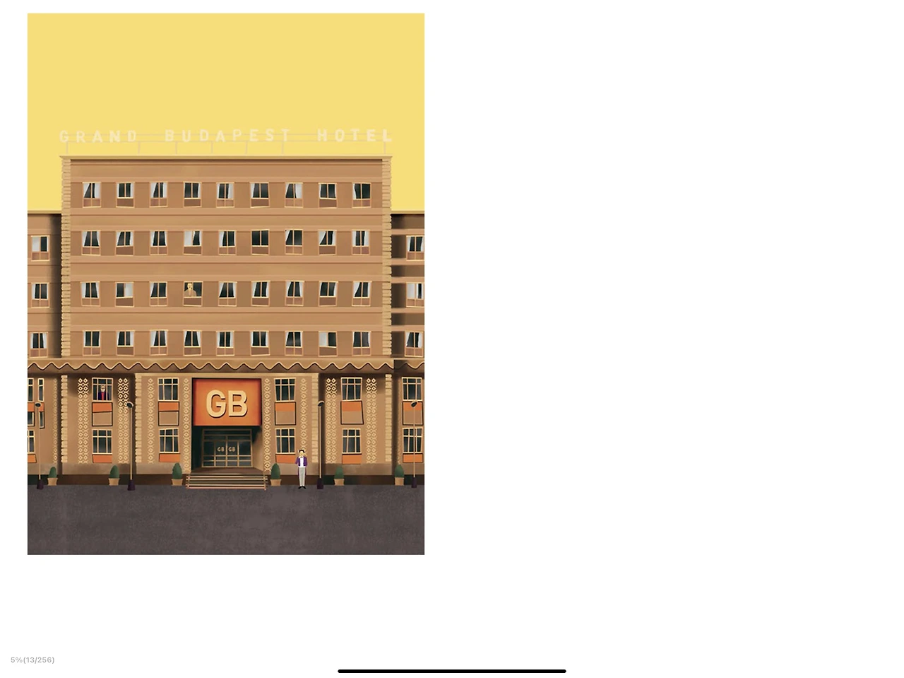 영화를 볼 때 등장인물 한 명을 택해서, 그 인물의 시점으로 영화를 관찰하다 보면 색다르게 느껴질 때가 많다. 등장인물 중 모자에 'LOBBY BOY(로비보이)'라고 쓰여있던 '제로 무스타파'라는 사람. 전쟁 난민으로 아랍에서 유럽으로 건너온 '제로'는 가족도 없고 아무것도 없어서 '제로'라는 이름이 그렇게 어울릴 수가 없다. 하지만 제로는 부다페스트 호텔에서 로비 보이로 일하면서 이 영화의 실질적 주인공이었던, 지배인 '무슈 구스타브'를 만나게 되고 구스타브와 얽힌 살인 누명, 엄청난 재산 상속의 여정을 함께하기도, 사랑하는 여자 '아가사'를 만나기도 하면서 점점 가진 게 많아졌으니 제로 무스타파에게 부다페스트 호텔은 그야말로 환상의 세계였던 셈이다.