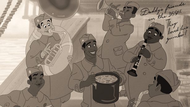 또한 이 어트랙션의 대기 공간에는 군 복무에 대한 존경의 메시지도 담겨 있다. 티아나의 아버지인 제임스는 제1차 세계대전에 참전한 흑인 군인이라는 설정을 갖고 있으며, 이를 바탕으로 실존했던 369 연대를 기리는 신문, 사진, 군복 전시물이 함께 구성되어 있다.