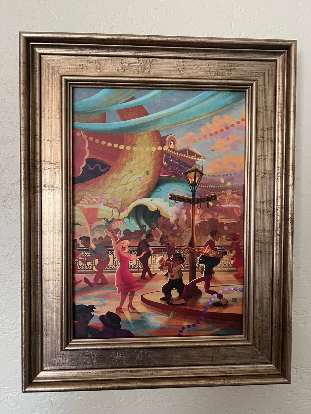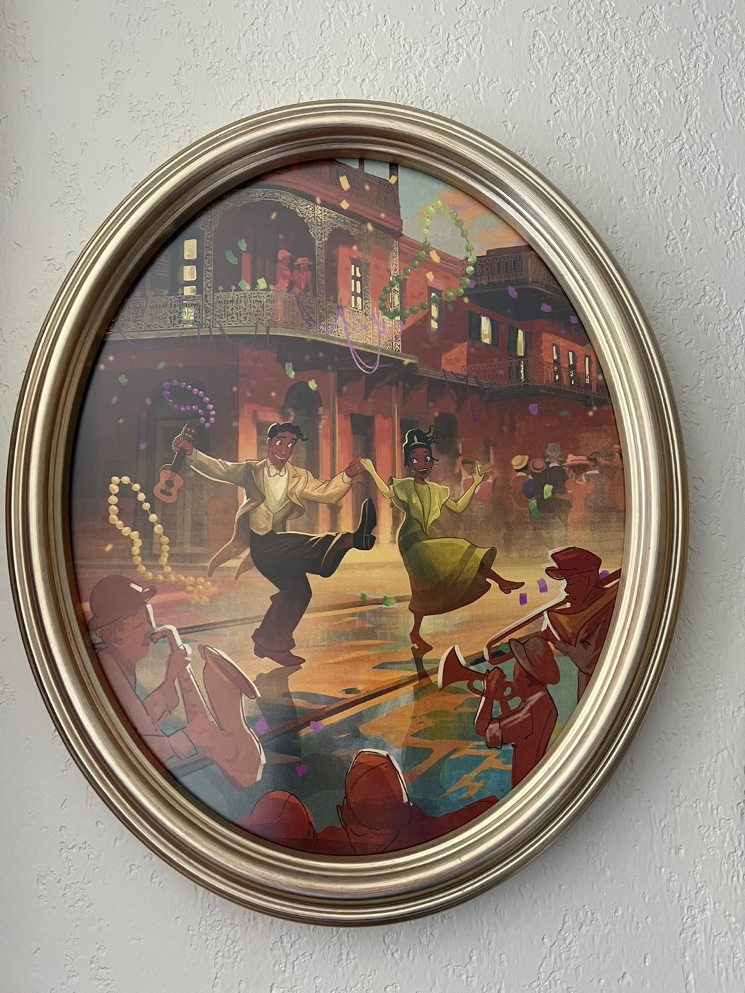 숙소 안에는 뉴올리언스 대표 축제인 마디그라에 참여한 듯한 개구리와 공주 주인공들이 액자에 담겨있었다. 참고로 색색의 목걸이를 던지는 것은 마디그라 퍼레이드의 재미를 위한 핵심 요소 중 하나이다.
