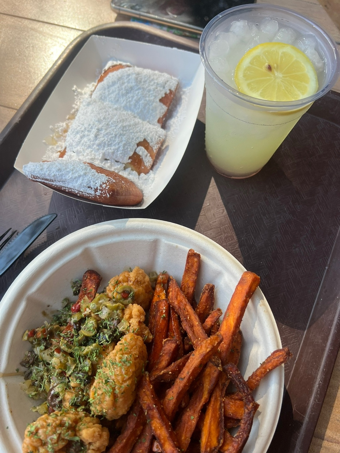 함께 마신 음료는 ‘Bayou Lavender Lemonade’라는 이름의 에이드였는데, 정말 독특하면서도 상쾌한 맛이 인상적이었다. 뉴올리언스 스타일에서 영감을 받았다는 설명을 보고 주문했는데, 기분 좋은 별미였다.