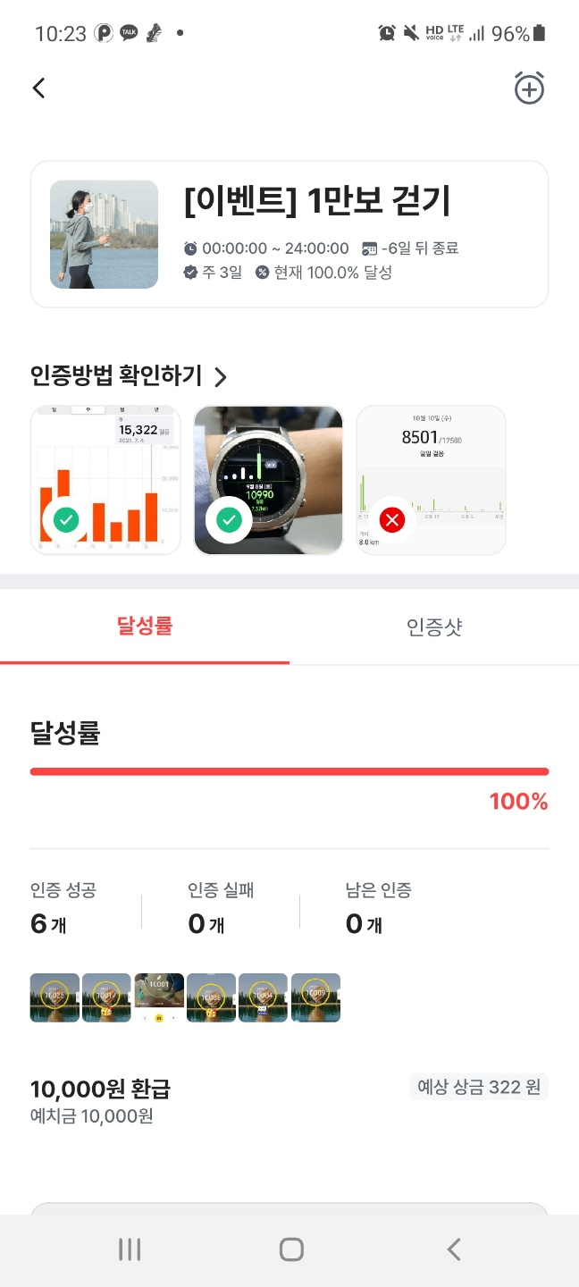 위의 사진처럼 10,000보 걷기도 2주일에 평일 5일 다 포함에서 10일 걷기 부터 시작해서 1주일 3일 걷기 총 2주일에 6일 걷기를 통한 도전들이 있기 때문에