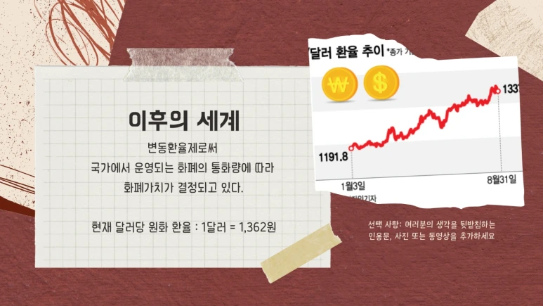 '변동환율제'가 전 세계적으로 통용되며 자리잡게 됩니다.