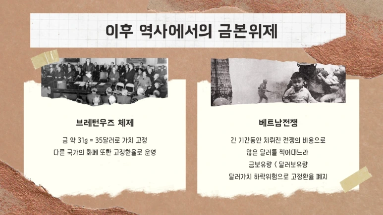 하지만, 이렇게 다시금 시작한 '금본위제'는 1971년의 베트남 전쟁으로 위기를 겪게 되고,,,
