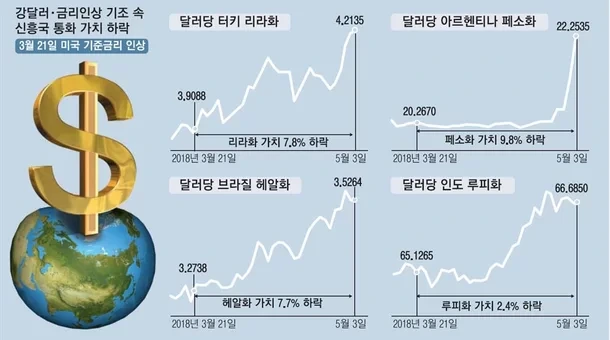 공격적인 금리 인상으로 인해 달러의 가치가 전 세계적으로 급격하게 상승해, 전 세계의 화폐 가치가 하락하는 상황인 것이죠.