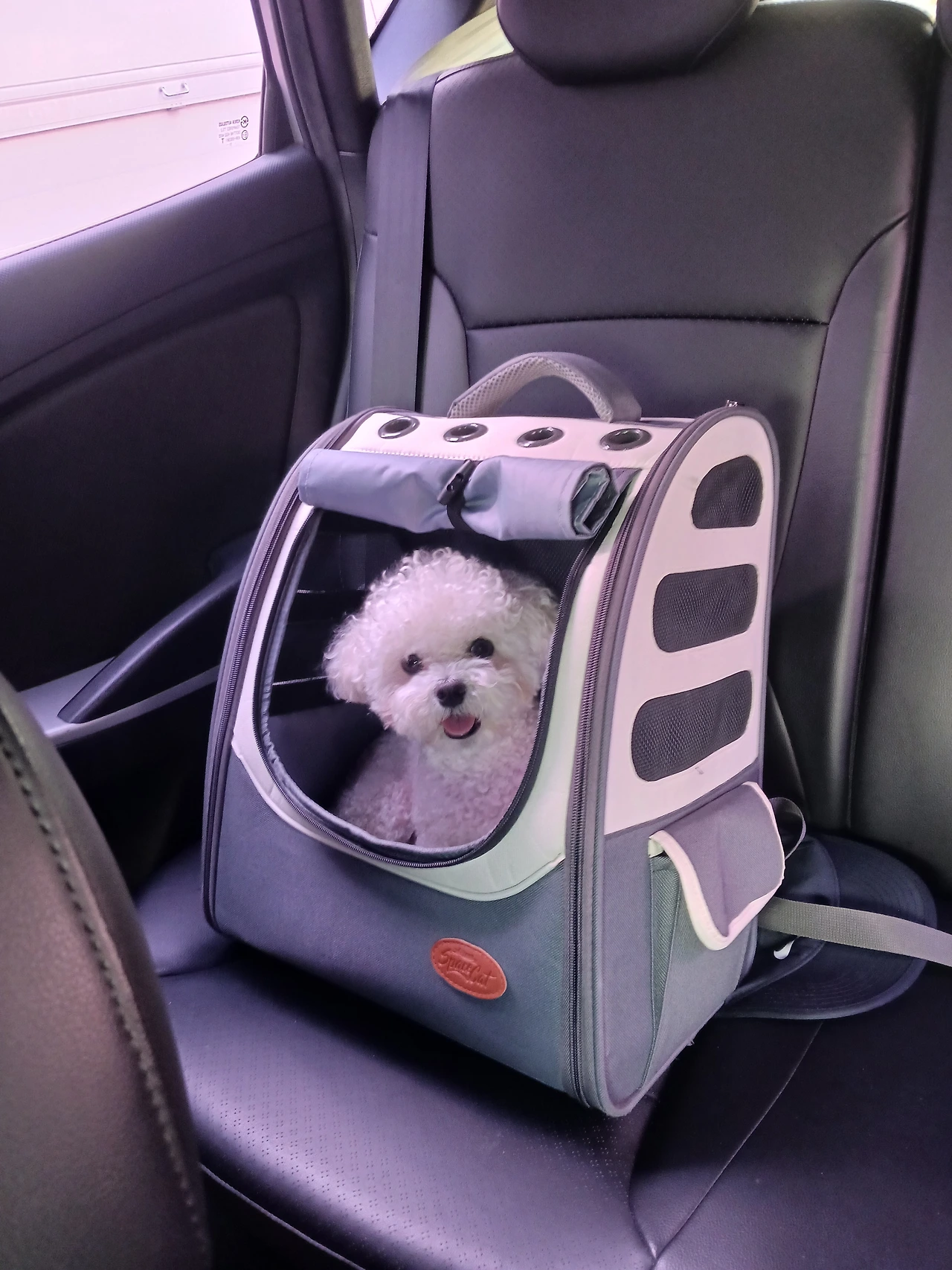 처음 차에 태웠을 때는 낯선 진동과 소음에 몸을 웅크리고 있었지. 하지만 오늘은 달랐다. 네 표정은 마치 이렇게 말하는 듯했다. "오늘은 어디 가는 거야? 신나는 데야?"