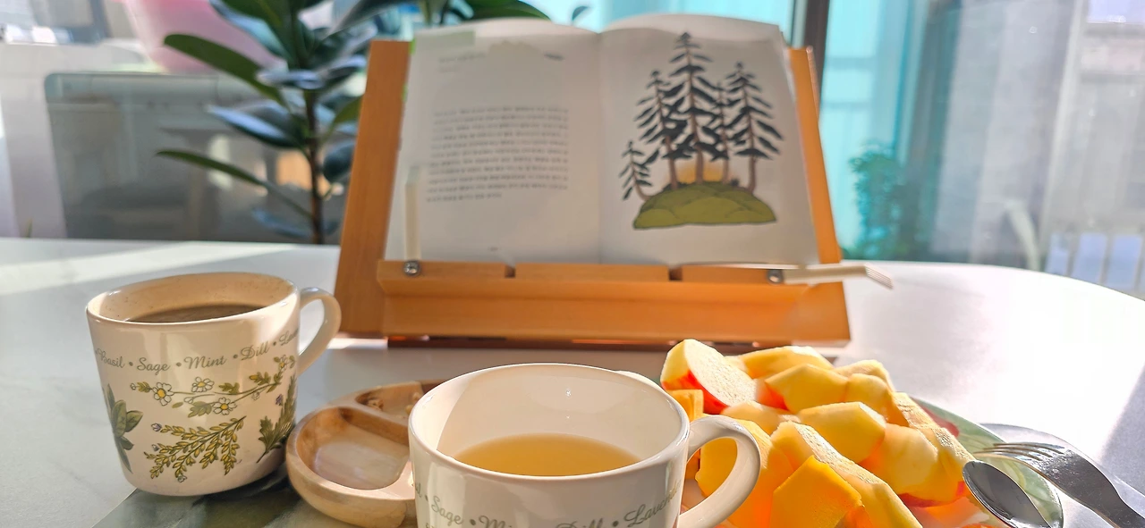 아침 햇살이 비치는 창밖을 보고 차를 마시다 어떤 부부를 떠올린다.