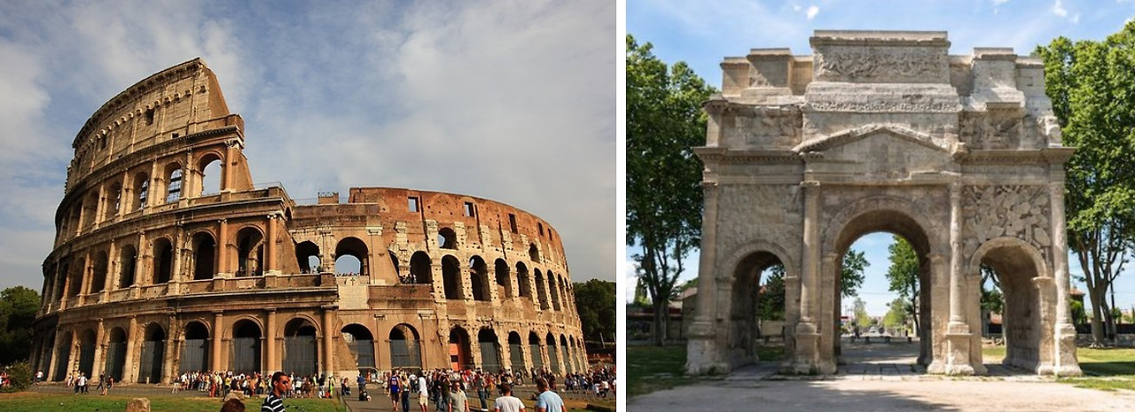 콜로세움 / 80년 경(좌), 티베리우스 황제의 개선문 / 14~37년 경(우)