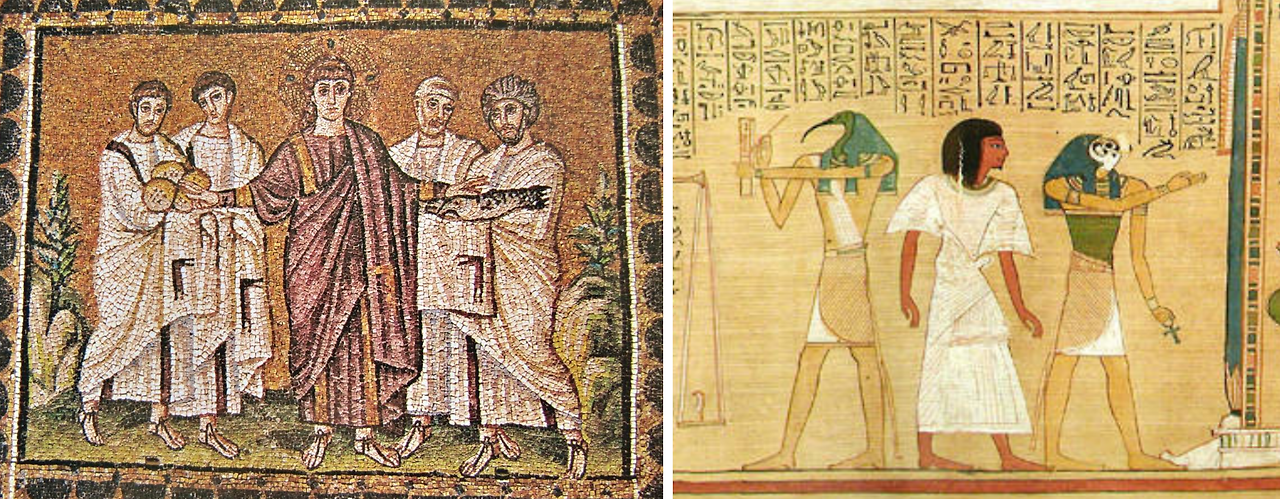 산 아폴리나레 누오보 성당의 모자이크 벽화, 빵과 물고기의 기적 / AD 520년 경(좌) 이집트 <사자의 서> / BC 1275년(우)