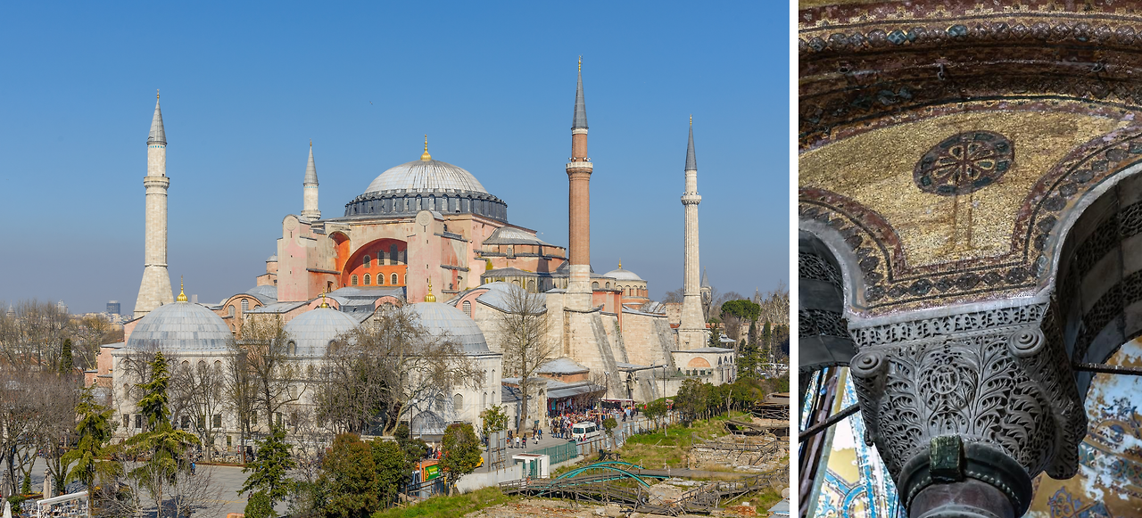 성 소피아 성당 전경 및 코린트 양식 기둥과 문양 / AD 562년