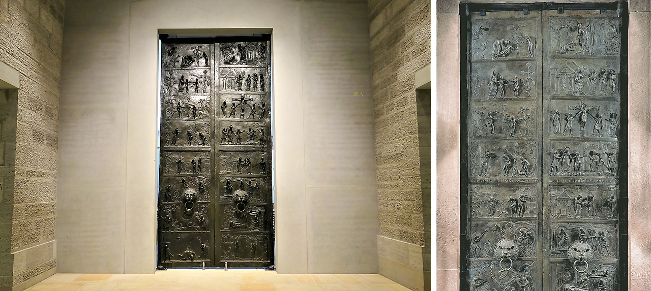왼쪽 문에는 창세기, 그 반대쪽에는 예수의 생애가 청동 주물로 표현된 <베른바르트 청동문>은 문짝 하나가 하나의 청동판으로 제작되었고 높이가 약 5m, 무게가 2 ton에 이르러 당시 기술을 고려할 때 대단한 성과라 할 수 있으며, 독일에서 금속으로 제작된 이미지 연작 작품 중 가장 오래된 것이기도 하다.