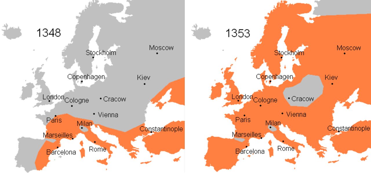흑사병 발병 지역과 전파 과정/1348년~1353년